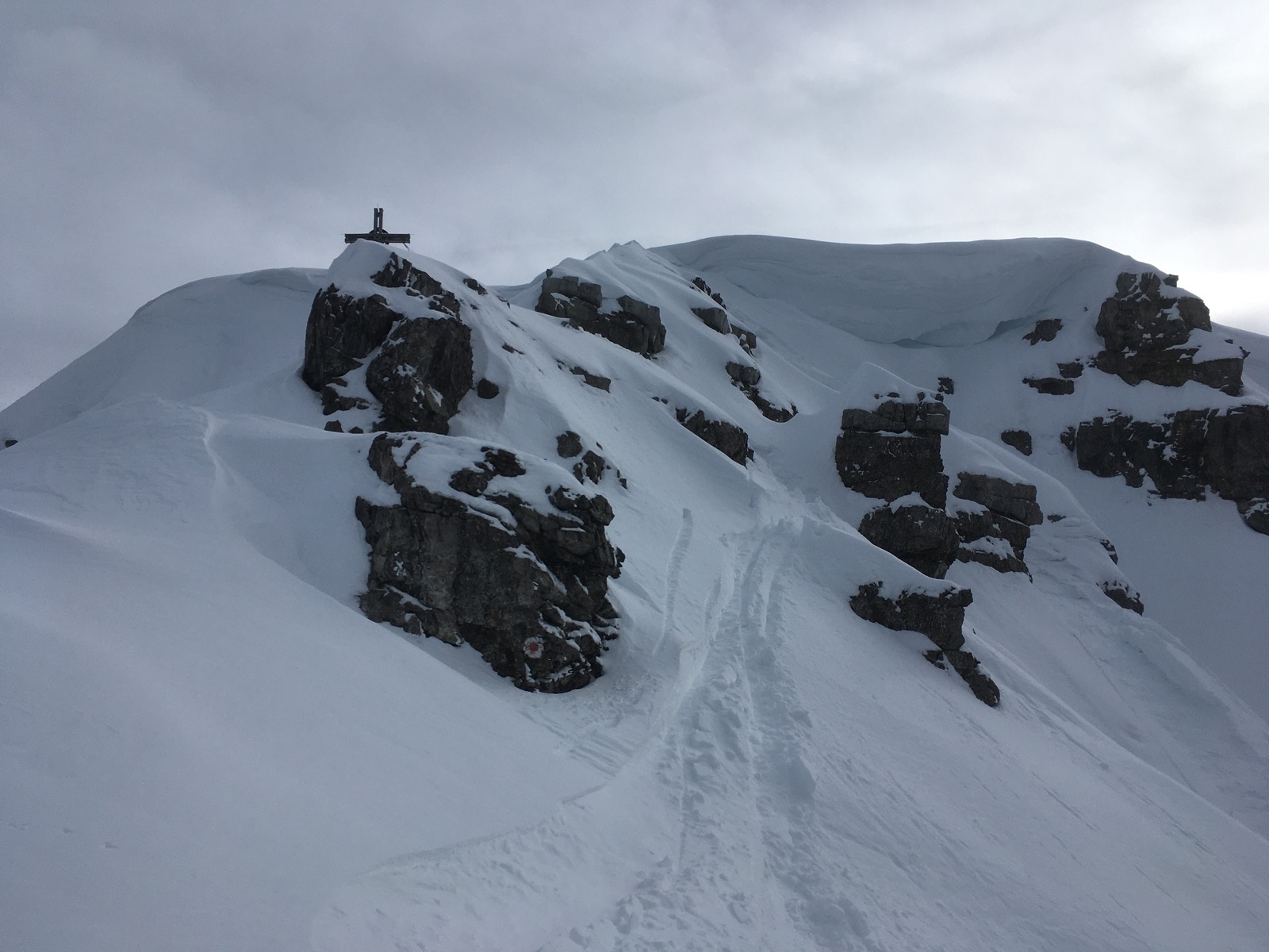 Heute ging es auf der Standardroute zum Thaneller - siehe Tourentipp-Archiv. Bis ca. 1.300 m liegt sehr wenig Schnee, es ging heute aber in der Abfahrt noch bis 5 min vor das "Karlift-Stüberl". Am Nachmittag war aber schon viel (Neu-)Schnee weggetaut, also wird man wohl bald die Skier unten tragen müssen. Bis ins eigentliche Kar weiterhin eher wenig Schnee, für den Aufstieg langt es, in der Abfahrt müsste man wohl kurz mal abschnallen. Im Kar selber gute Schneelage, meistens pulvrig. Heute ging es mit Skiern das ganze Kar hinauf bis in die Scharte zwischen Thaneller und Rintljoch. Ganz oben ist es natürlich schon sehr steil und felsig - dennoch mit Skiern besser als zu Fuß, haben auch alle so gemacht (und damit ist die Skispur nicht zerstapft, danke!). Von der Scharte sind es nochmals 200 Hm bis zum Gipfel - heute in Kammlagen mit starkem Wind.