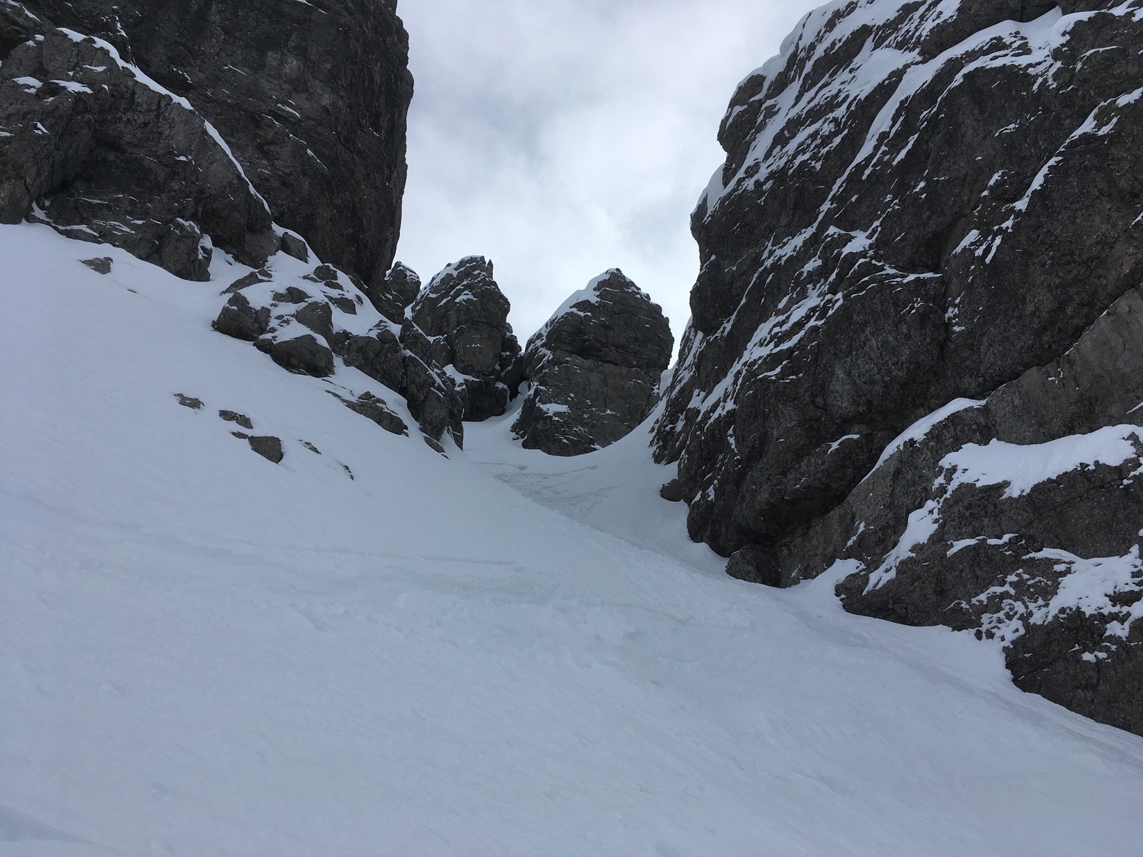 Flachland in Sicht, aber davor geht es durch den engsten und steilsten Teil der Rinne: