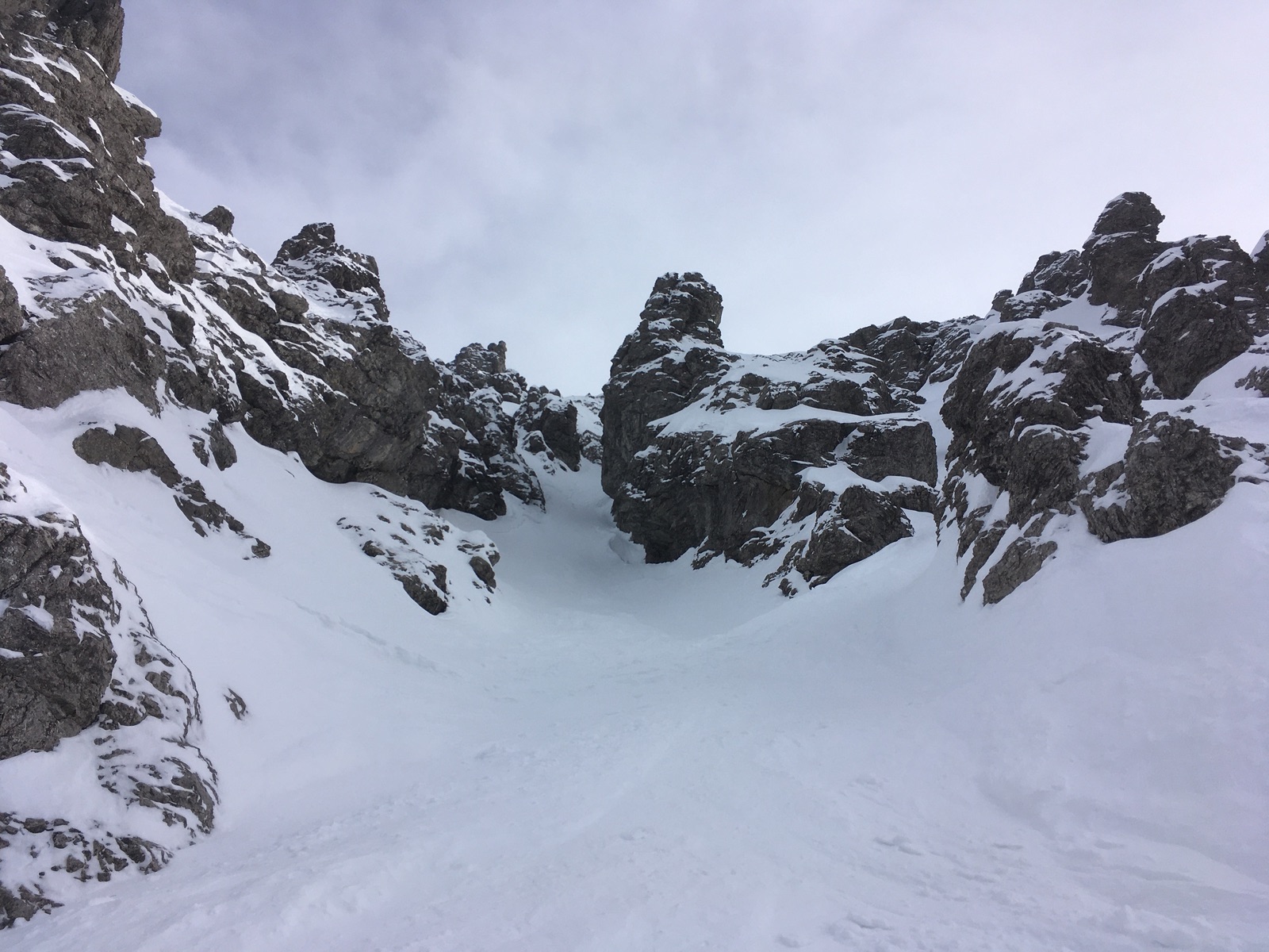 Blick auf die Einfahrt in die Nordrinne (steiler, als es auf dem Foto ausschaut):