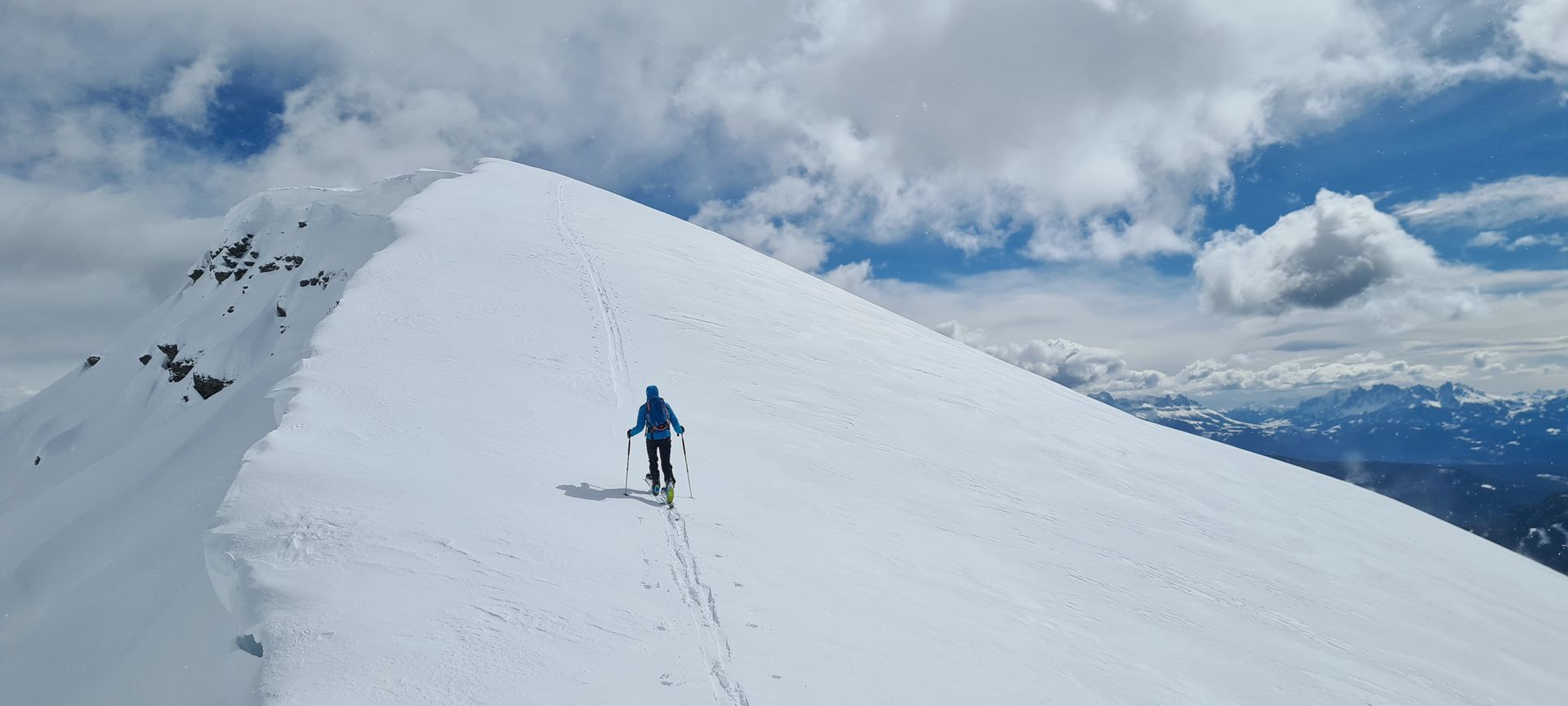 Im unteren Bereich war der Schnee im Aufstieg von Sonne und Nachttemperaturen krustig gebacken, bei der Abfahrt aber firnig ![]()
