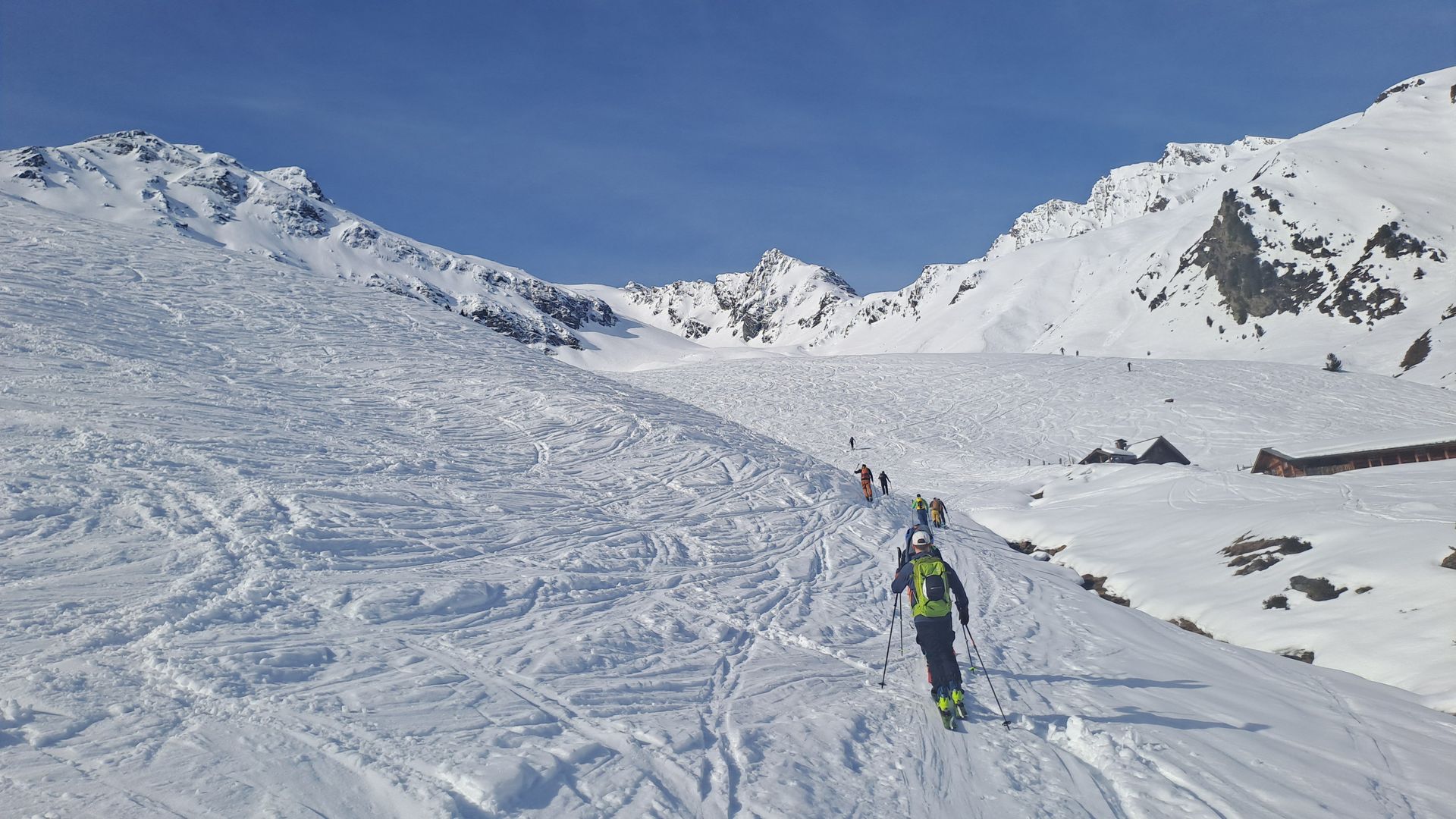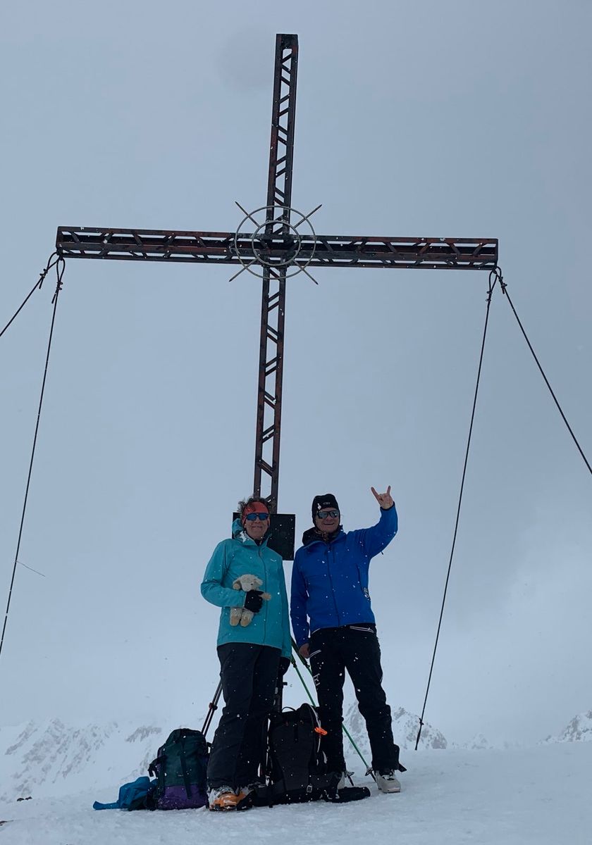 Die Wettervorhersage war nicht optimal, aber ein bisserl was geht immer. Am Samstag morgen war der Blick aus dem Fenster vom Alpengasthof Praxmar dann doch etwas ernüchternd. Also haben wir uns erstmal am großzügigen Frühstücksbuffet bedient. Inzwischen kam dann doch die Sonne raus und so sind wir zur Lampsenspitze aufgebrochen. Das Wetter hat gehalten und so haben wir den ersten Gipfel mitgenommen. Mal Sonne, mal Wind und mal Schneeschauer, alles war dabei. In der Abfahrt gab es oben zerfahrenen Pulver und unter 2000m feuchten Papp. Die letzten Hänge haben wir dann lieber die Rodlbahn genutzt.