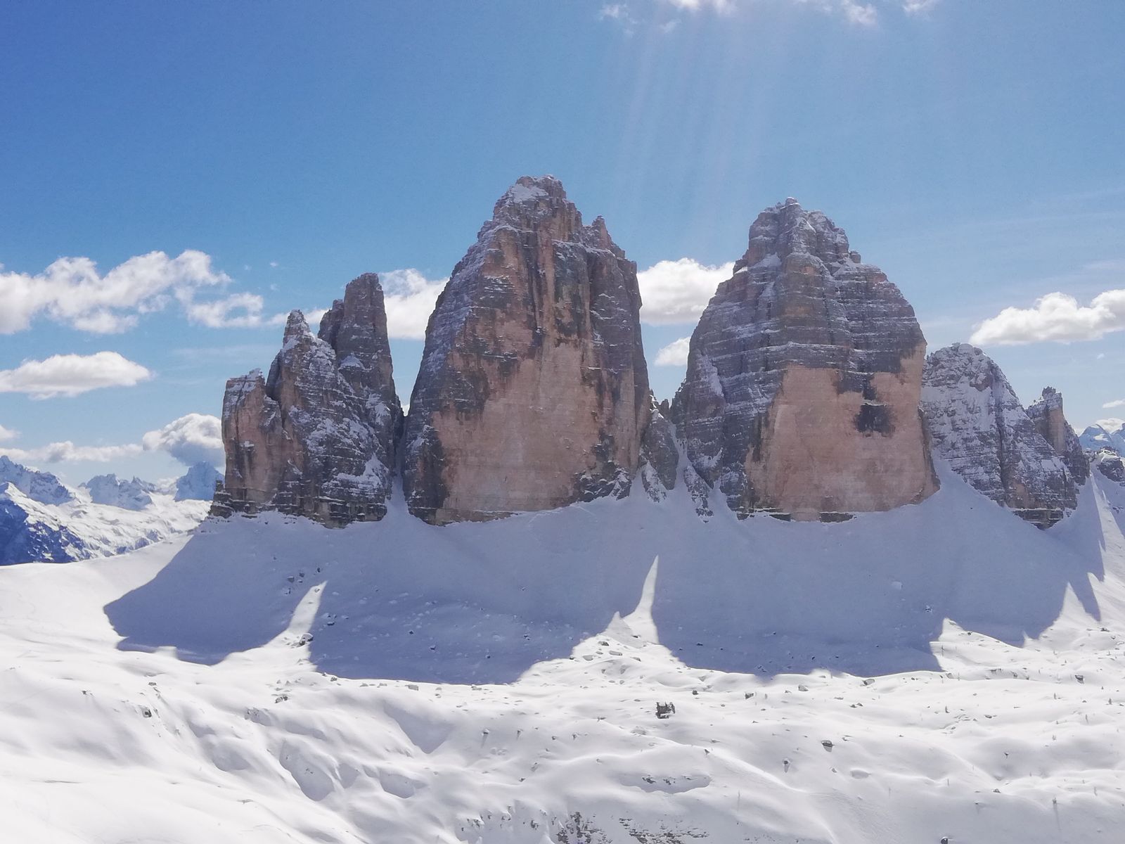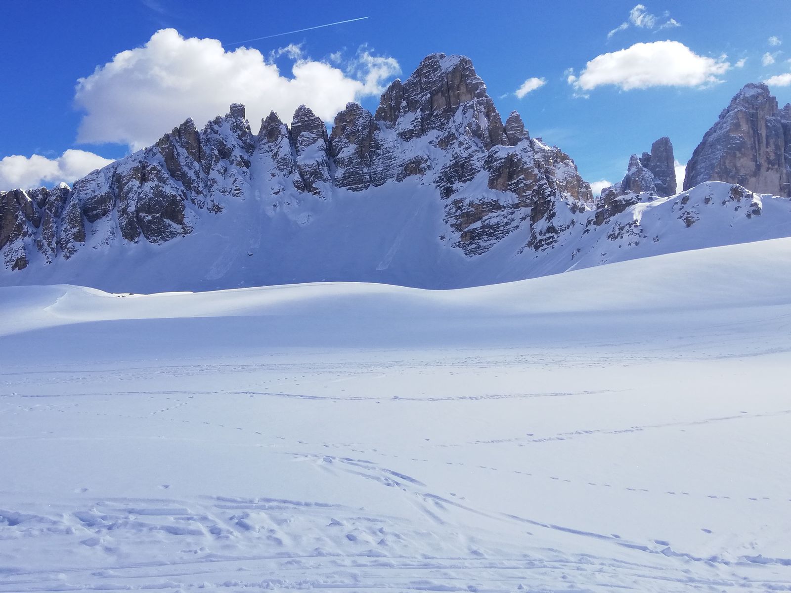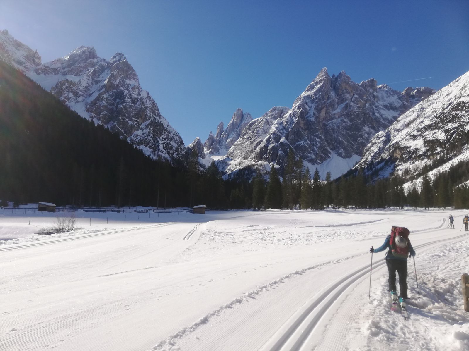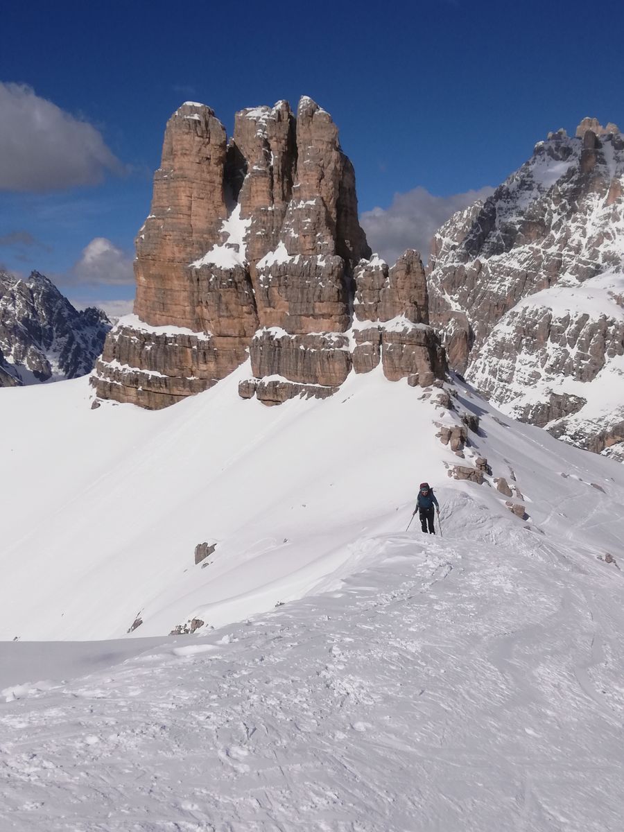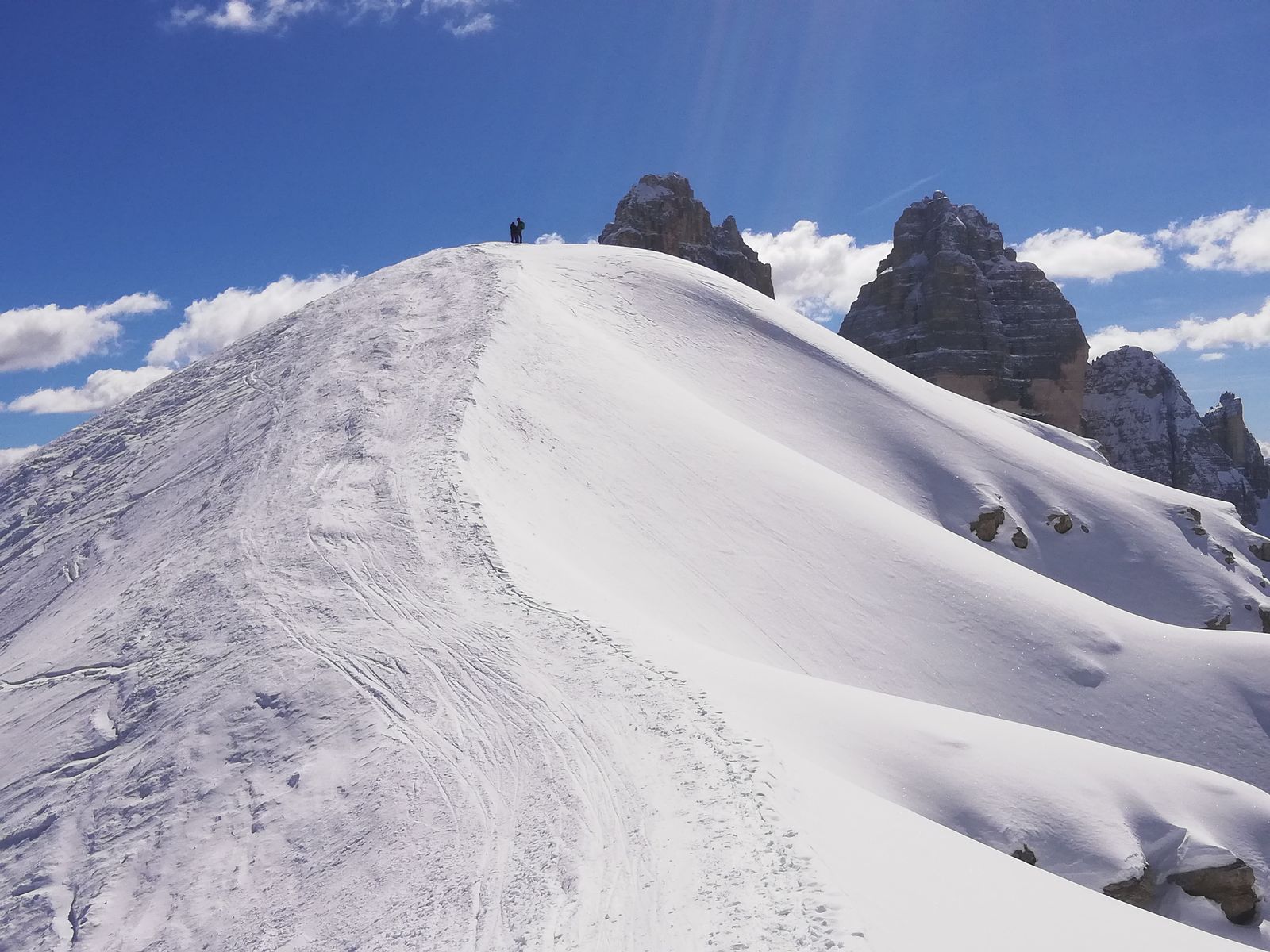 Vom Parkplatz (10€/Tag) weg auf Schnee entlang der Loipe zur Talschlusshütte und weiter durch das Altensteintal immer in etwa entlang des Sommerwegs zur Dreizinnenhütte bis auf ca 2350m und dann den letzten Hang gerade hoch in den Sattel rechts vom Gipfel und über den Gratrücken nach links zum höchsten Punkt.