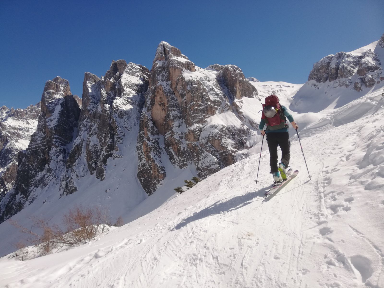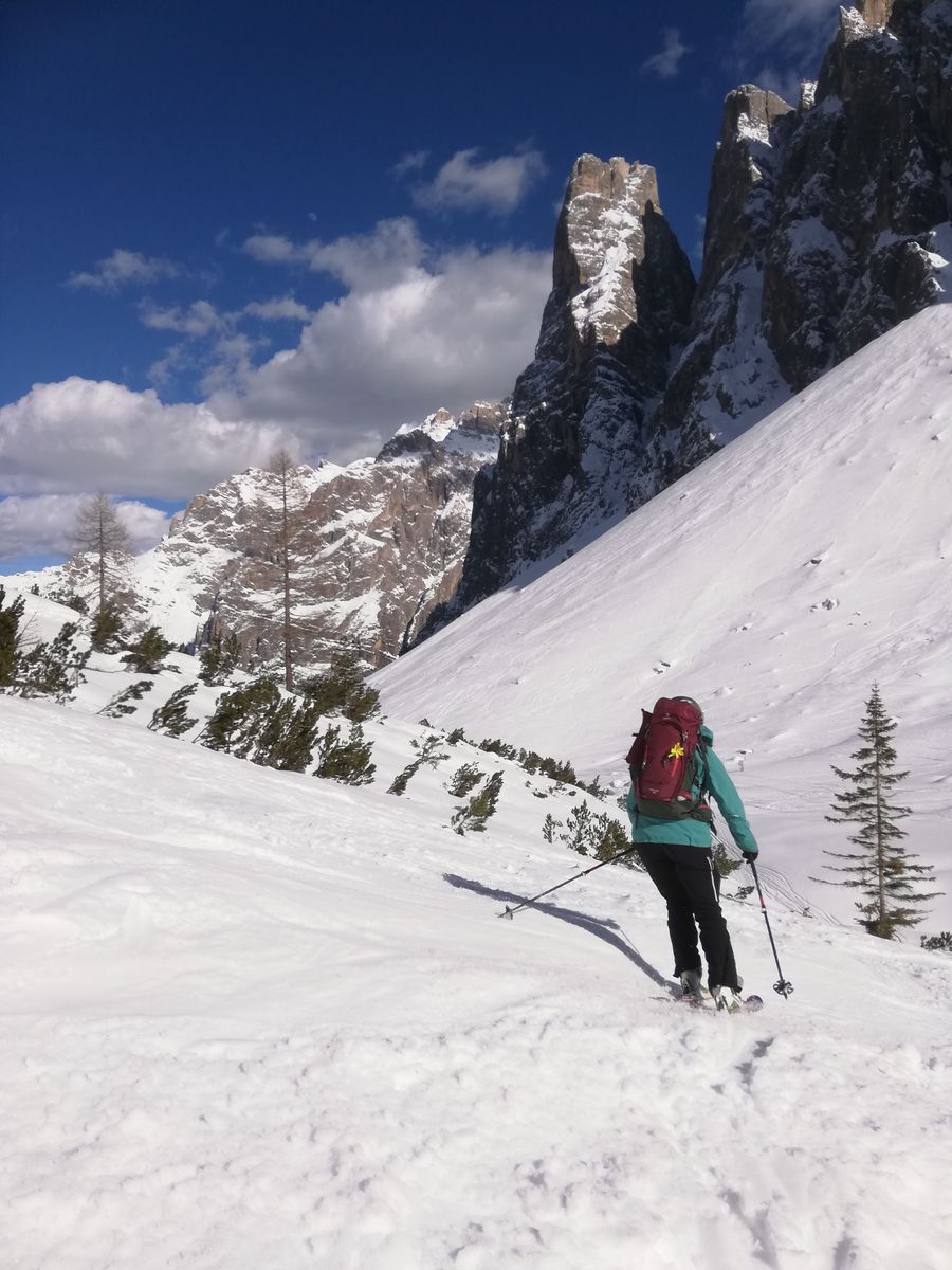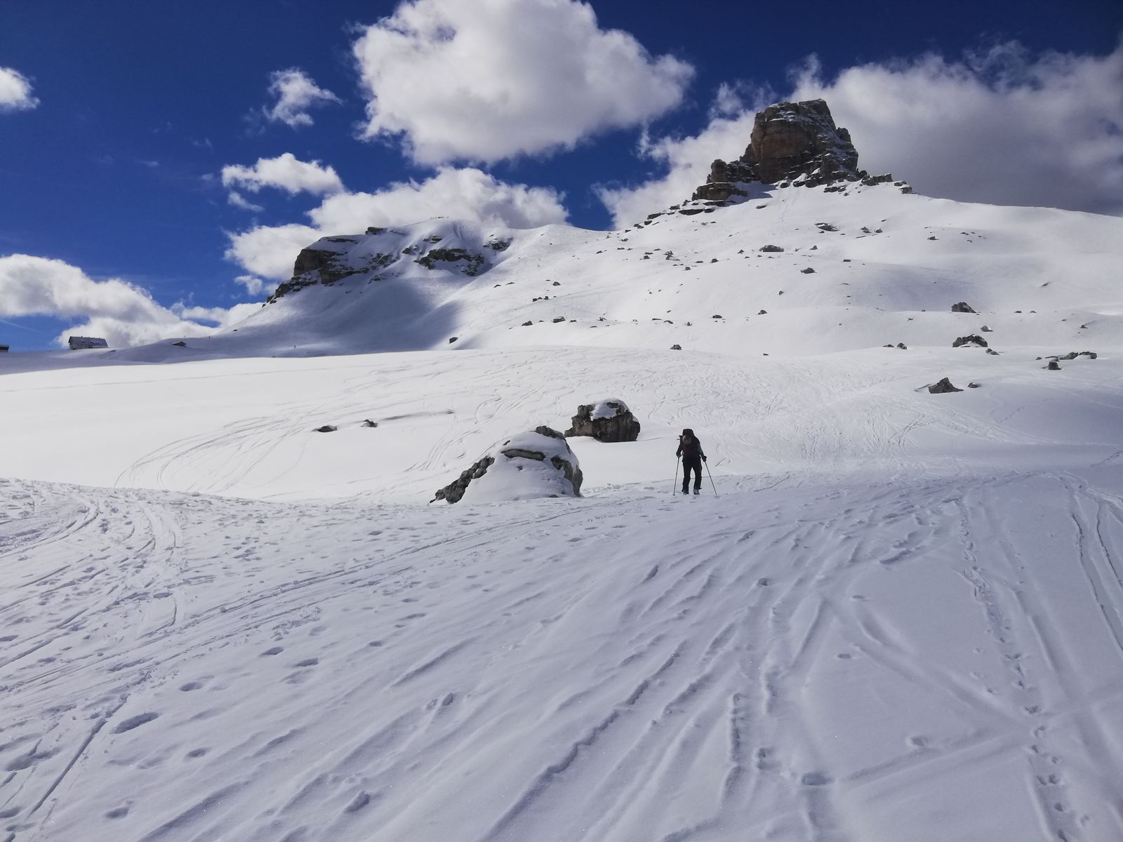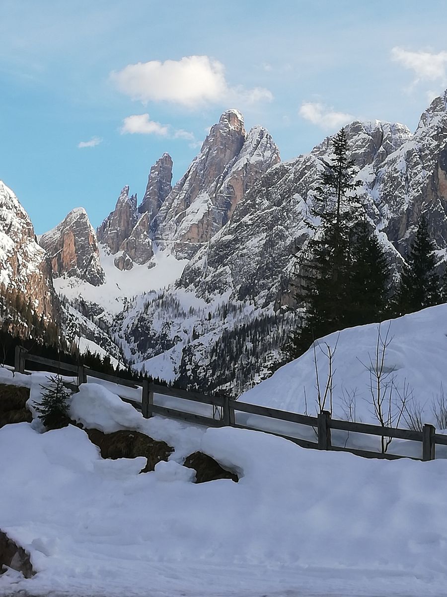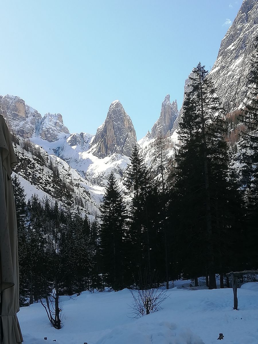 Vom Parkplatz (10€/Tag) weg auf Schnee entlang der Loipe zur Talschlusshütte und weiter durch das Altensteintal immer in etwa entlang des Sommerwegs zur Dreizinnenhütte bis auf ca 2350m und dann den letzten Hang gerade hoch in den Sattel rechts vom Gipfel und über den Gratrücken nach links zum höchsten Punkt.