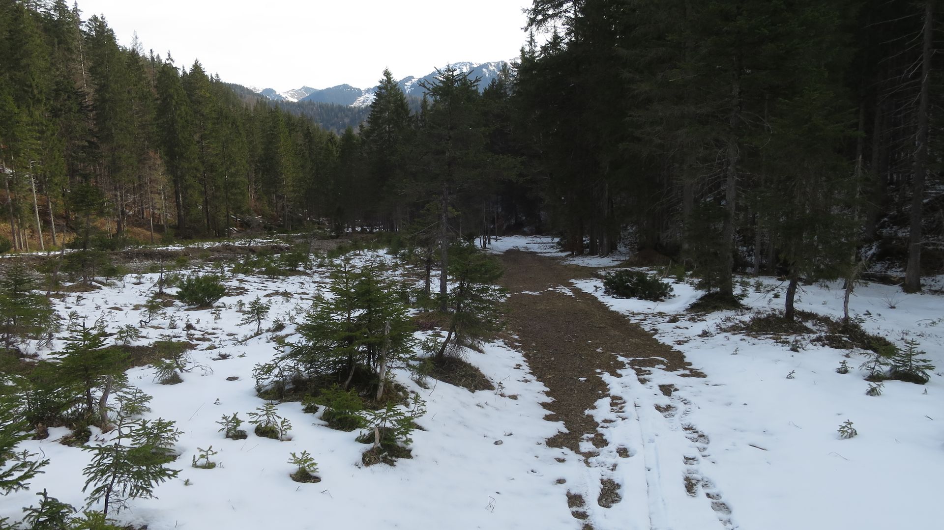 Nach etwas Neuschnee und Schneeverwehungen der vorausgegangenen Nacht mit dem MTB (immer noch ohne Motor) vom Spitzing über die Schlagalm bis fast zum Ende des Fahrwegs im unteren Karboden geradelt, Dort war dann auch die Neuschneegrenze und es hat zum Aufstieg mit Ski direkt ab Raddepot gereicht.
