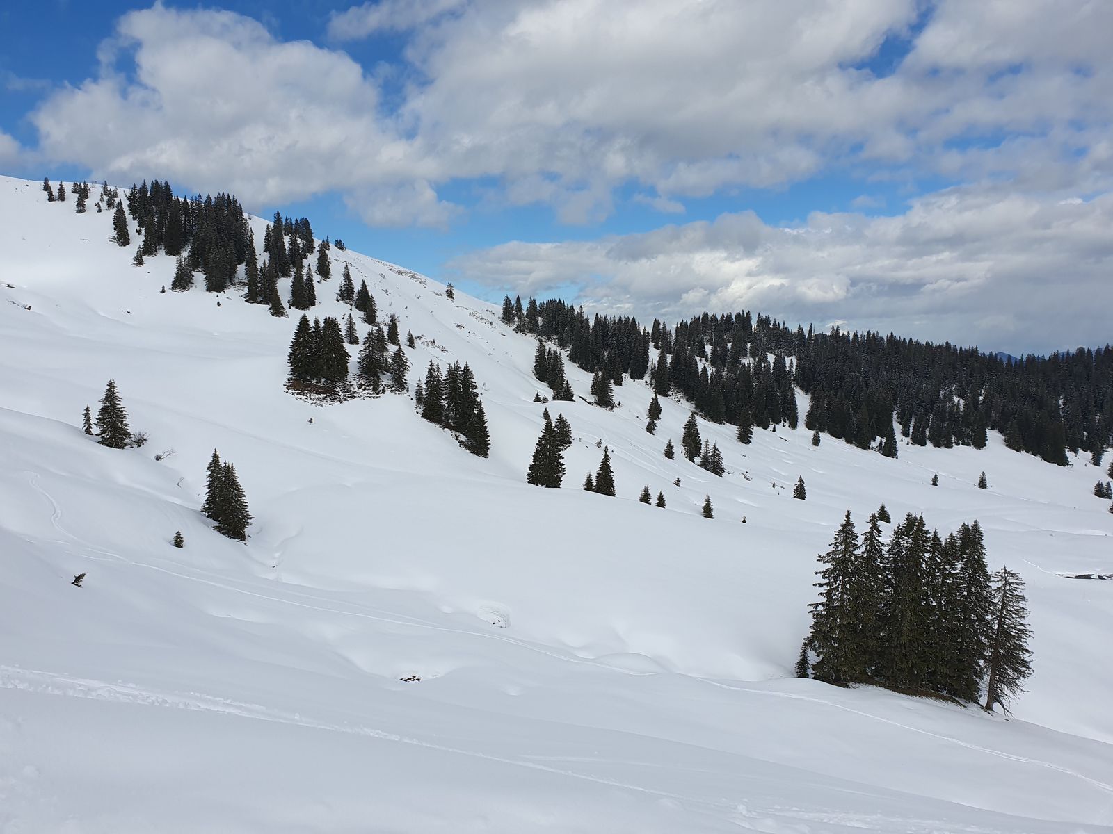 gestern hat es auch leicht geschneit, auf den Neuschnee vom Ostermontag und es sieht von der Menge her wirklich gut aus.