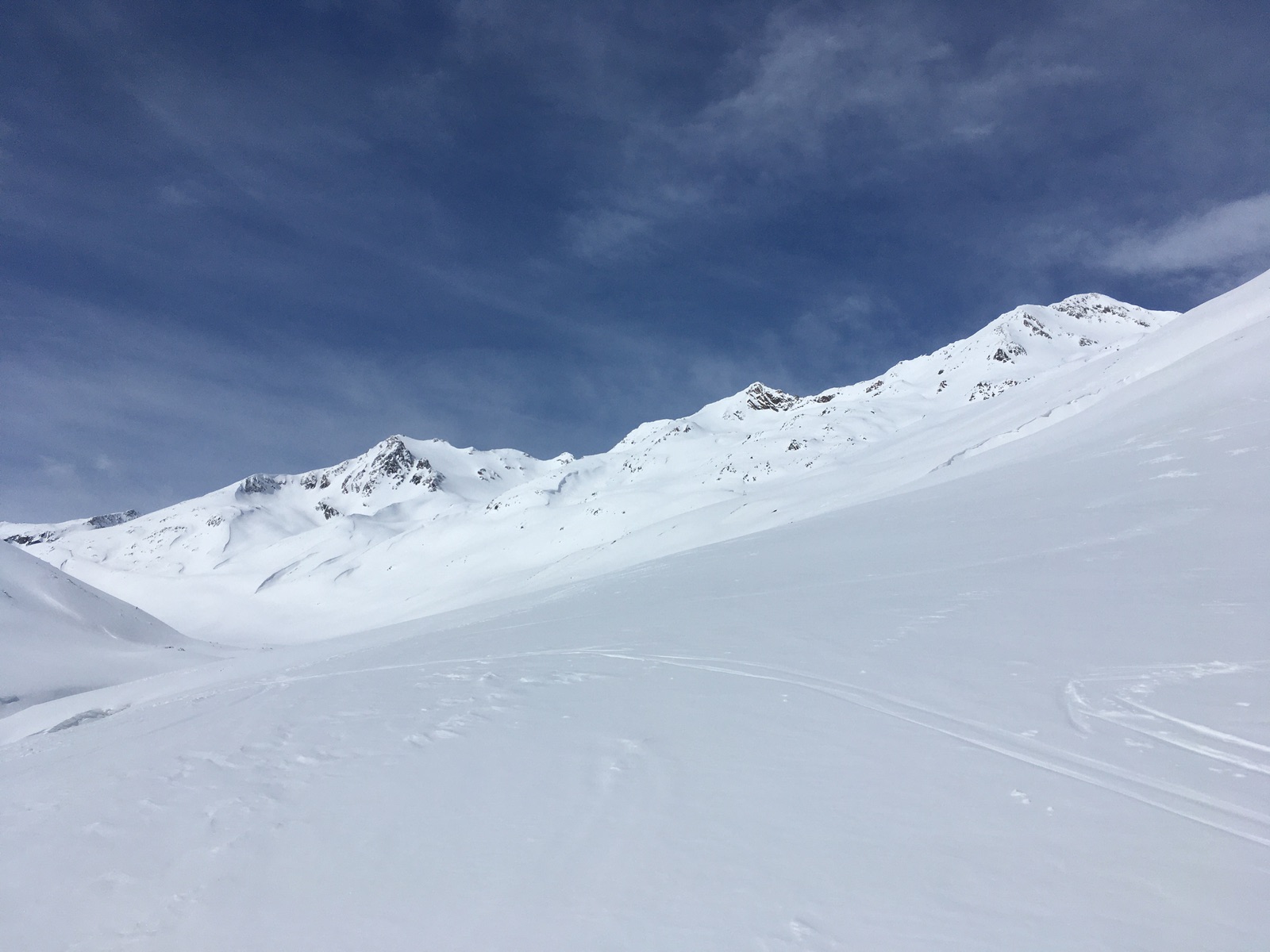 Heute setzte ich die Überschreitung des Saykogel von Vent aus aufs Programm. Heuer hat es in Vent in der Höhe mit Ausnahme von sonnseitigen Hängen relativ viel Schnee. Im Niedertal beim Aufstieg Richtung Martin-Busch-Hütte fiel mir auf, dass bisher nur wenig Lawinen abgegangen sind - es gab Jahre, da bin ich hier in erheblichem Umfang durch Lawinenkegel gestiegen. Könnte sich mit der massiven Wärme am Wochenende natürlich ändern. Auch ist die Skispur bisher erst dünn ausgeprägt - vielleicht auch die Folge davon, dass überraschenderweise heute neben mir nur eine einzige Gruppe unterwegs war? So wenig Andrang im Niedertal habe ich glaublich noch nie erlebt. Hinter der Schäferhütte war heute am Vormittag die obere Spur (= Sommerweg) noch nicht angespurt. Es sind alle hinab zum Bachbett (ohnehin meistens die sicherere Variante); allerdings gab es zwischendurch sehr steile Spuren aus dem Bachbett hinaus - da haben vielleicht welche gemerkt, dass sie eigentlich anders gehen wollten? Heute am Vormittag war alles noch ziemlich hart gefroren - m.E. wird bei der Tour ohnehin häufig die Abrutschgefahr unterschätzt.