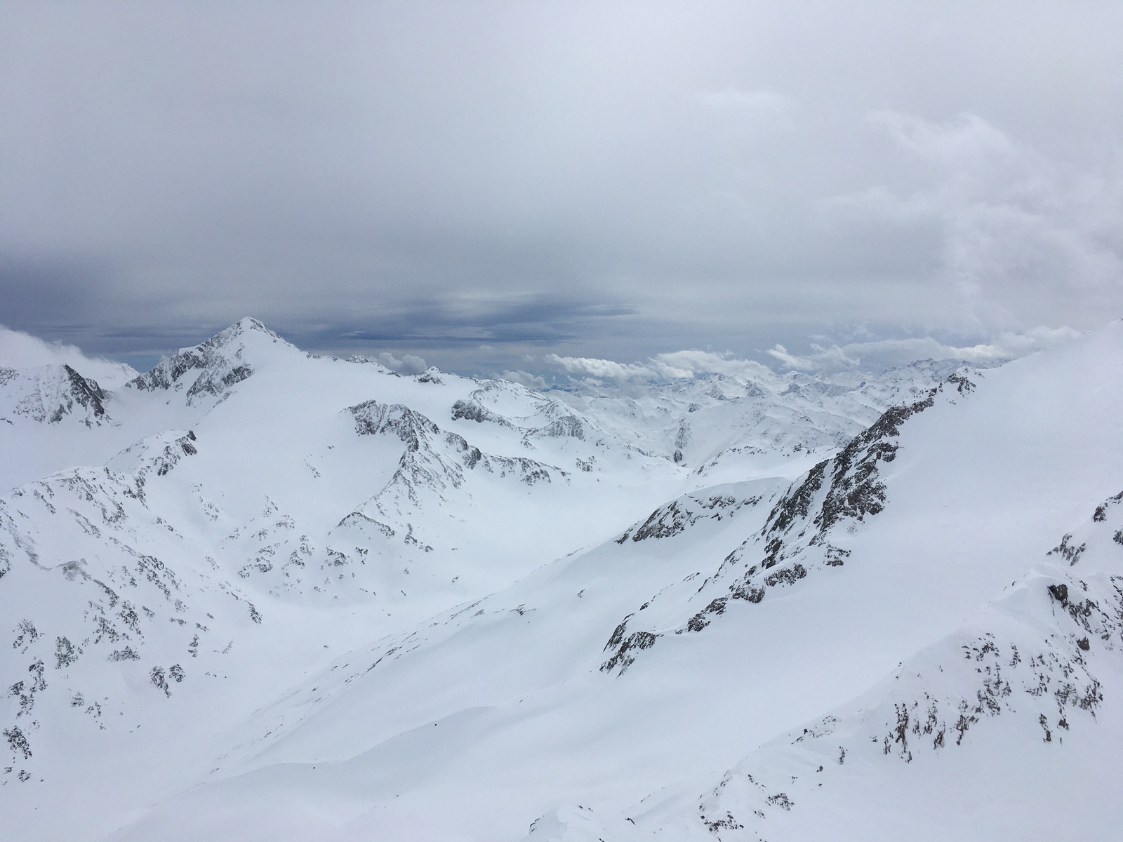 Gipfelblick zur Wildspitze (hinten) - mittlerweile Schleierwolken aufgezogen: