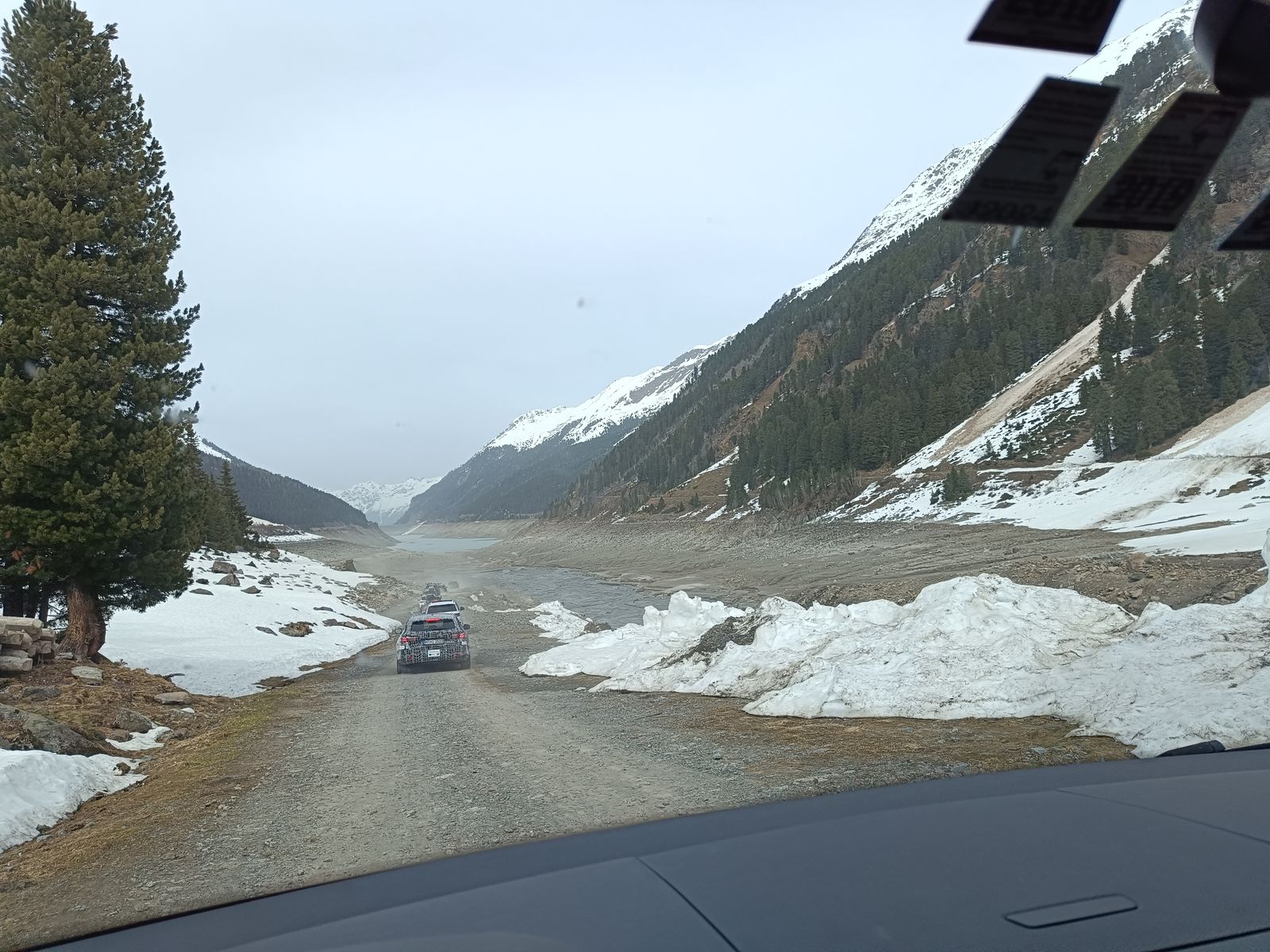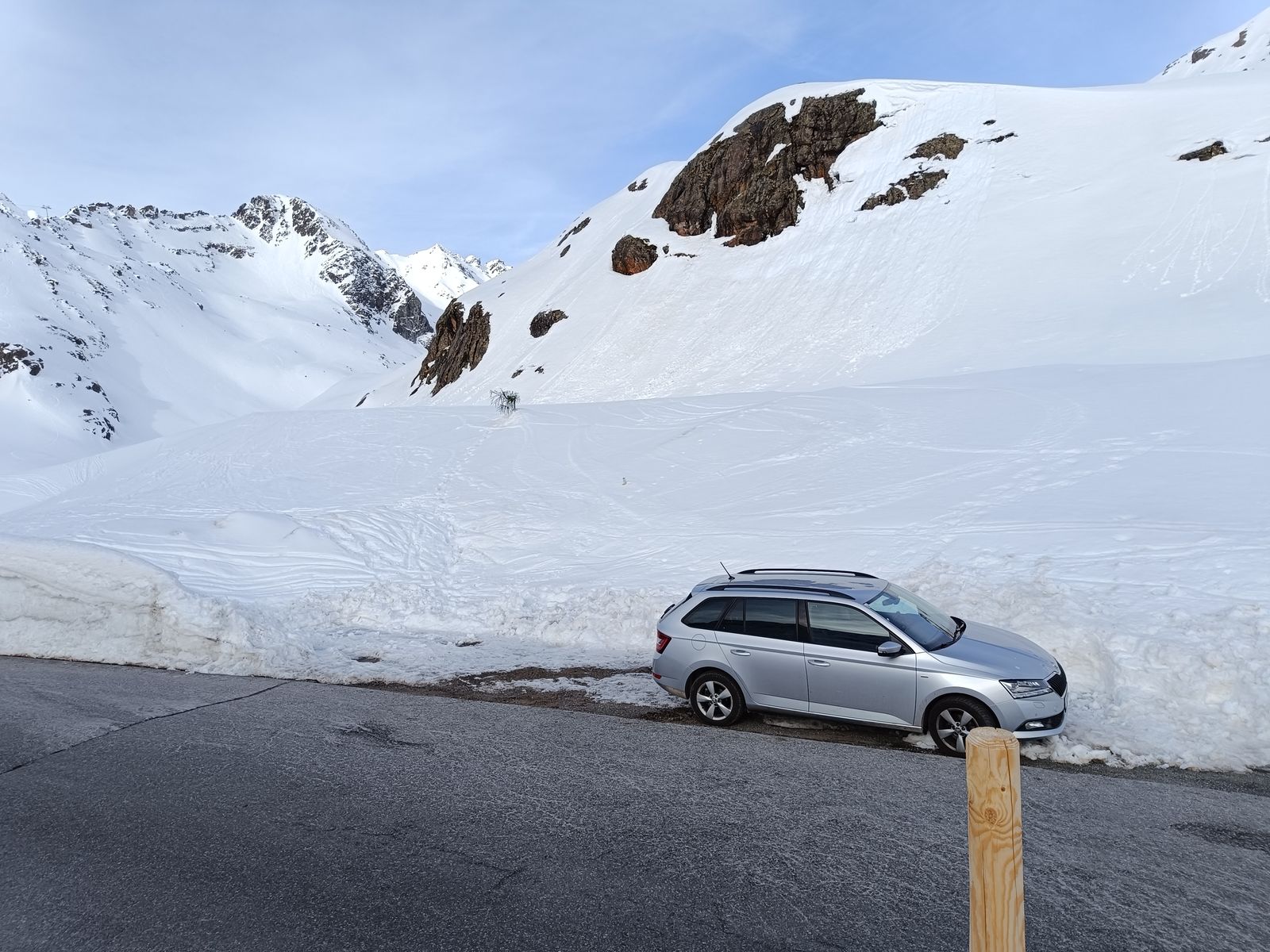Als ich wieder beim Auto war, war die Gletscherstraße wegen Lawinengefahr gesperrt und erst um halb 4 haben sie wieder aufgemacht. War aber definitiv sinnvoll, weil eine Lawine auch wirklich abgegangen ist. Auch am Samstag gingen mehrere Lawinen auf die Straße ab. Die machen das dort schon echt gut und verantwortungsvoll; vor allem haben sie einen sehr sympathischen "Straßenwart", der die Leute informiert. Ich hab mich auch früher, als ich noch Pistenskifahren war, bei den Kaunertalern immer sehr wohl gefühlt. Spannend war, dass wir gestern auf einer Schotterpiste sozusagen durch den fast leeren Gepatschstausee fahren durften, weil beide Uferstraßen durch Lawinen blockiert waren. Da ist man dann froh über ein geländegängiges Auto und der Porschefahrer klar im Nachteil.
