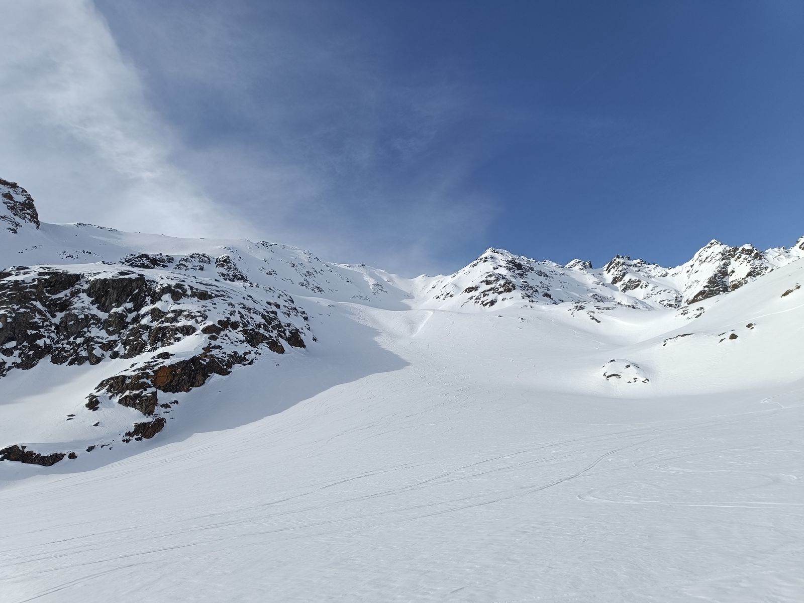 Lawinengefahr: Im Krummgampental grundsätzlich sehr gering. Im deutlich steileren Riffltal rechtzeitige Abfahrt bei Frühjahrsbedingungen wichtig.