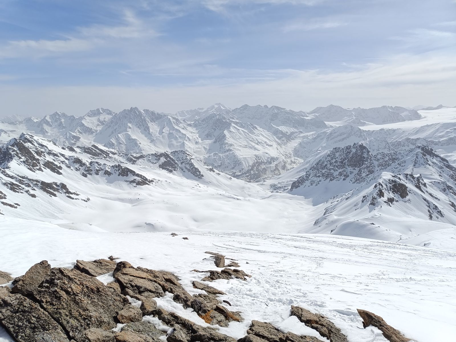 Am Sonntag bin ich dann hoch zur Talstation der Ochsenalmbahn und hab von dort die Rundtour auf den Glockturm gemacht. Dabei habe ich den längeren und einsamen Aufstieg über das Krummgampental gewählt und bin über das skifahrerisch attraktivere Riffltal abgefahren. Den Gipfel kann man momentan mit Skiern erreichen. Steigeisen für die letzten Meter sind aber oft sinnvoll. Bei Abfahrt um 11 Uhr von oben bis unten perfekter Firn - da konnt ich's richtig krachen lassen. Das Riffltal ist diesbezüglich aber auch einfach super: Die steileren oberen Hänge firnen meist gleichzeitig mit den flacheren unteren auf.
