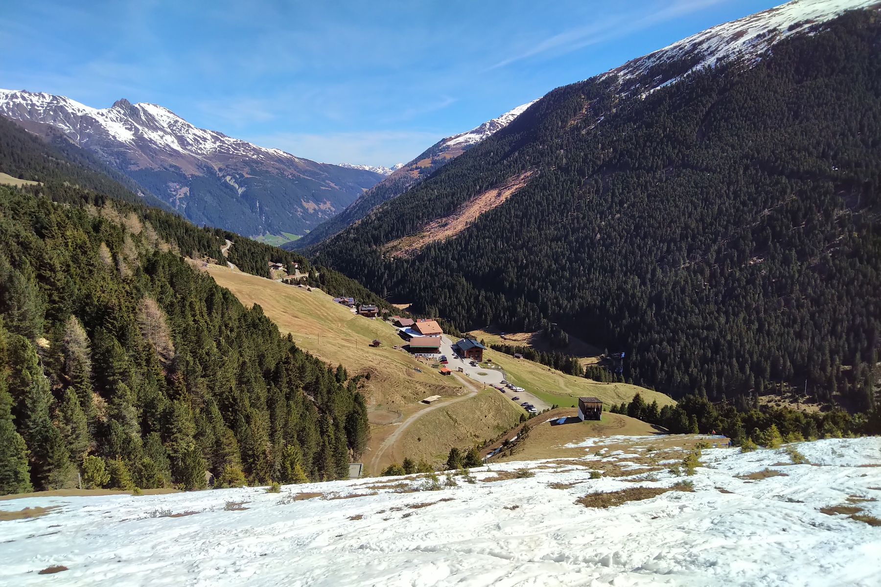 Die Lampsenspitze hat ziemlich grün ausgeschaut - wahrscheinlich mindestens 1 Stunde Ski tragen. Daher sind fast alle vom Parkplatz Richtung Zischgeles nachgekommen: