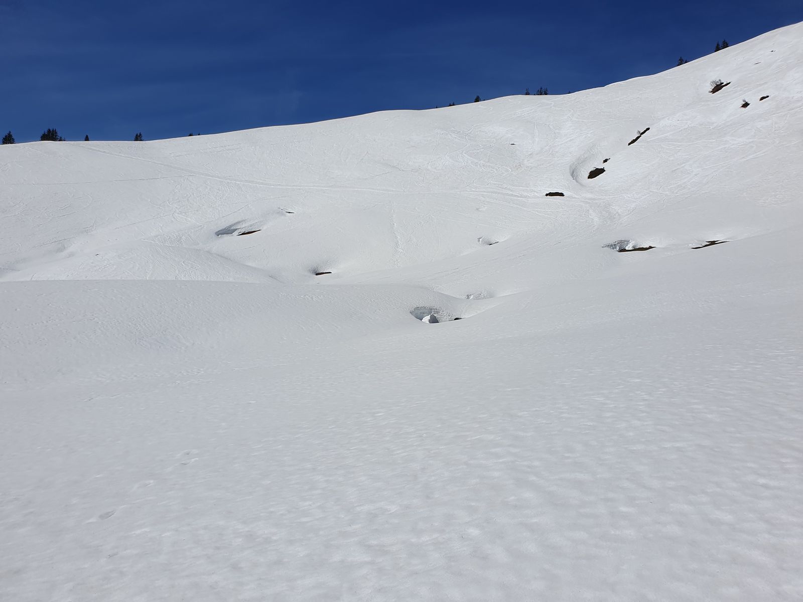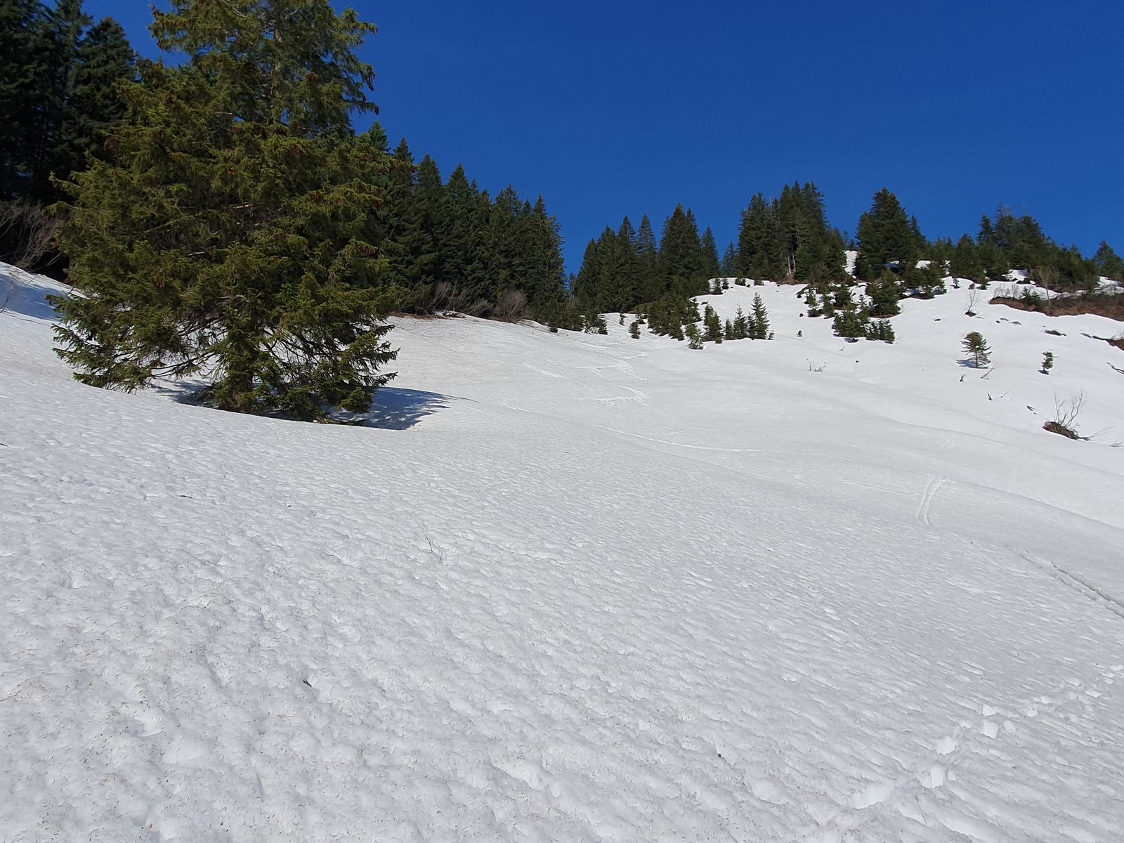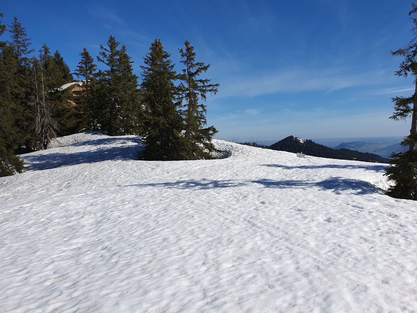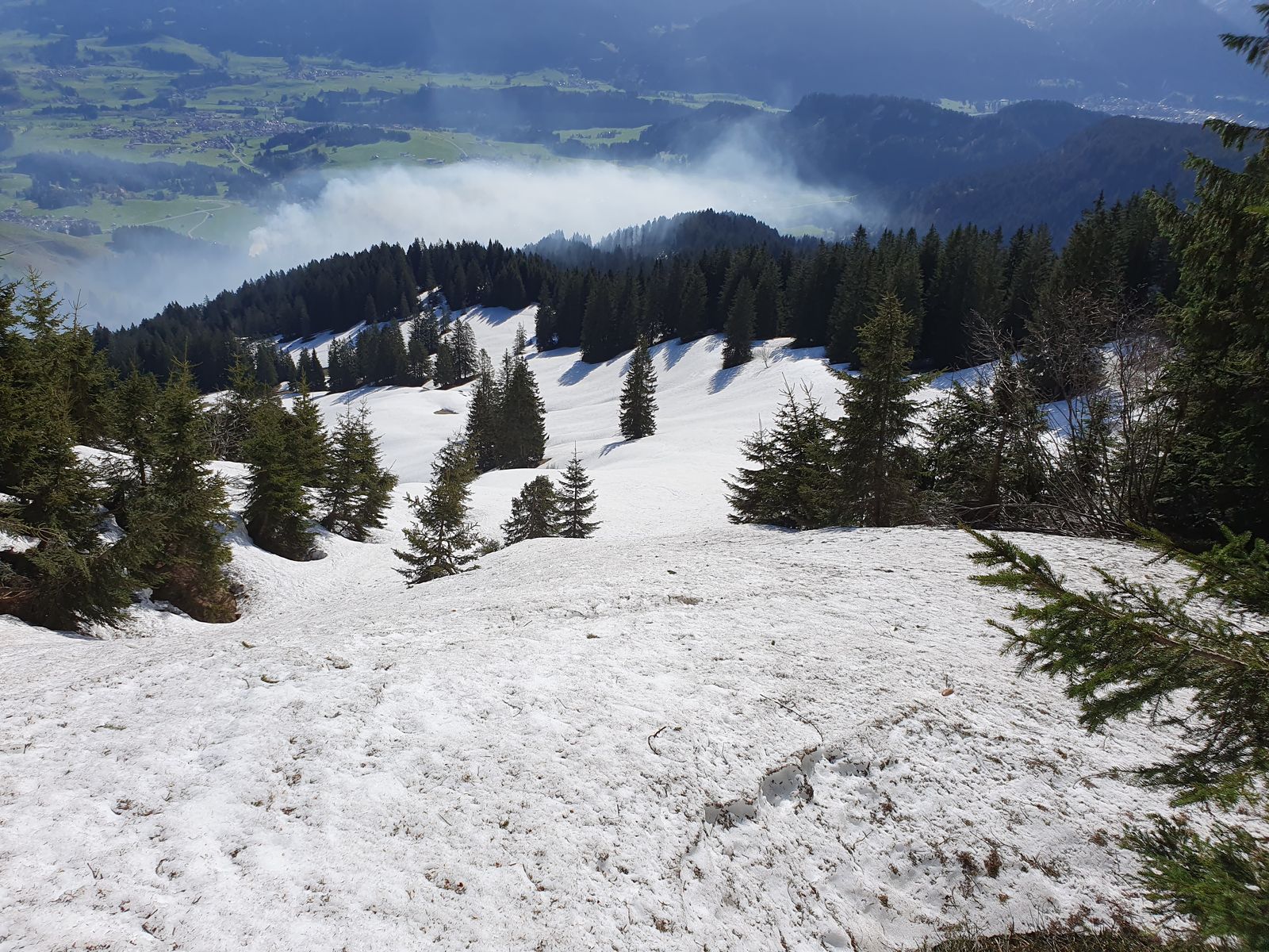 Die Abfahrt vom Wannenkopf war komplett tief weiß und bis auf einen schmalen Streifen am Waldrand (mit Bruchharsch) angenehm zu schwingen. Die Abfahrt vom Riedbergerhorn ebenfalls sehr angenehm.