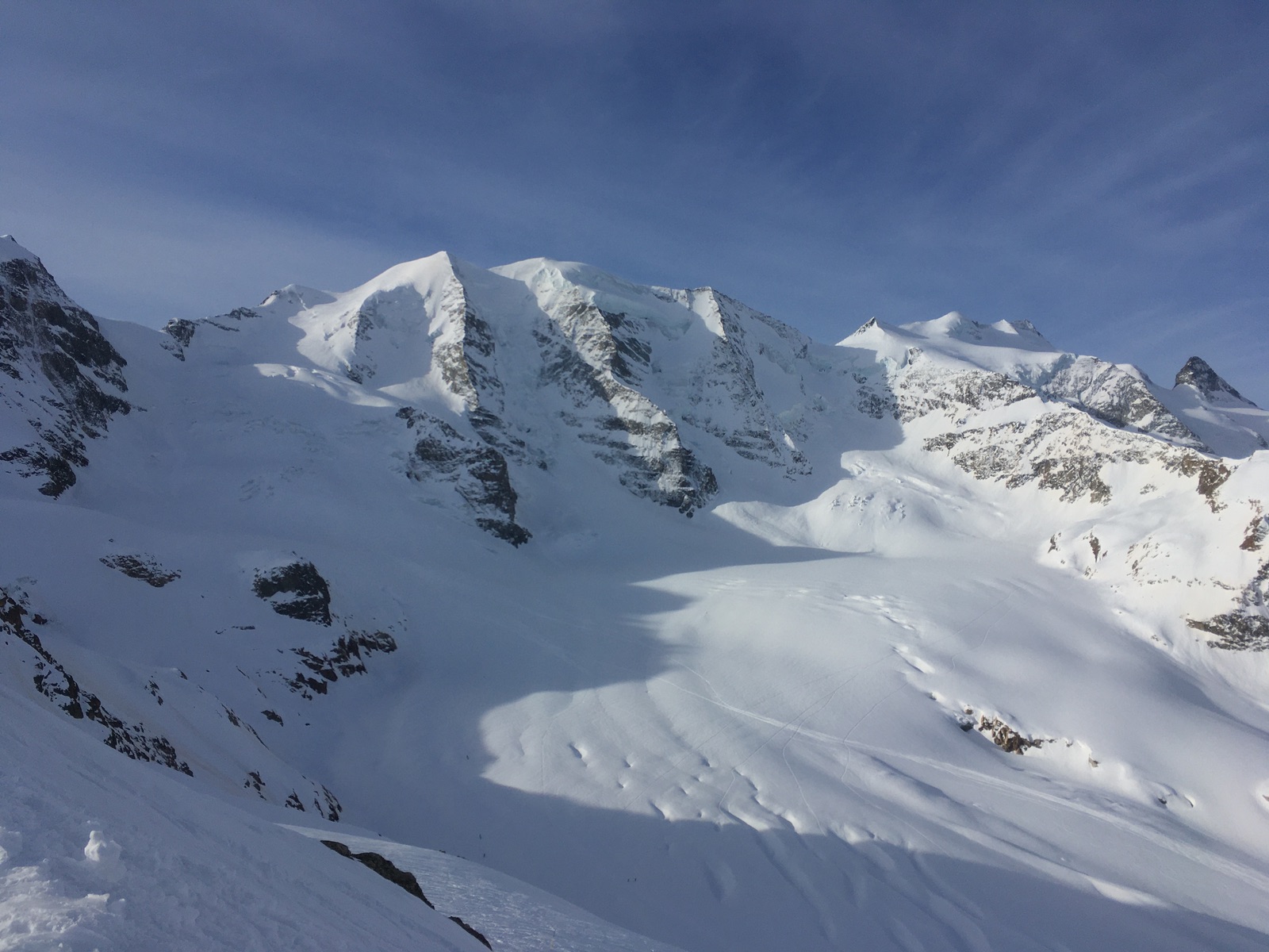 Der weitere Weg ab dem Hauptgipfel, hinten Piz Bernina:
