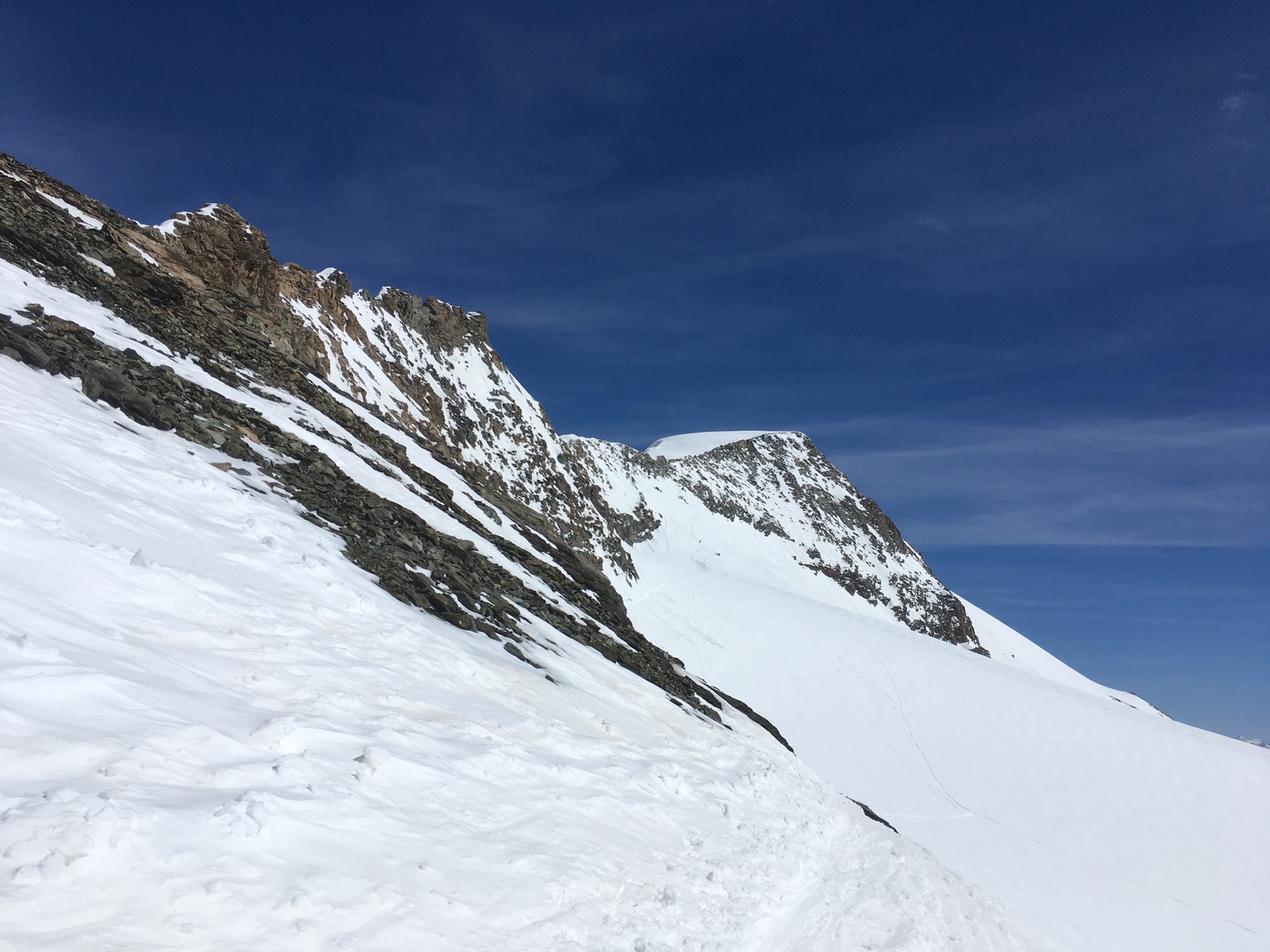 Blick vom Skidepot auf den Stapf-Aufstieg zum Ostgipfel: