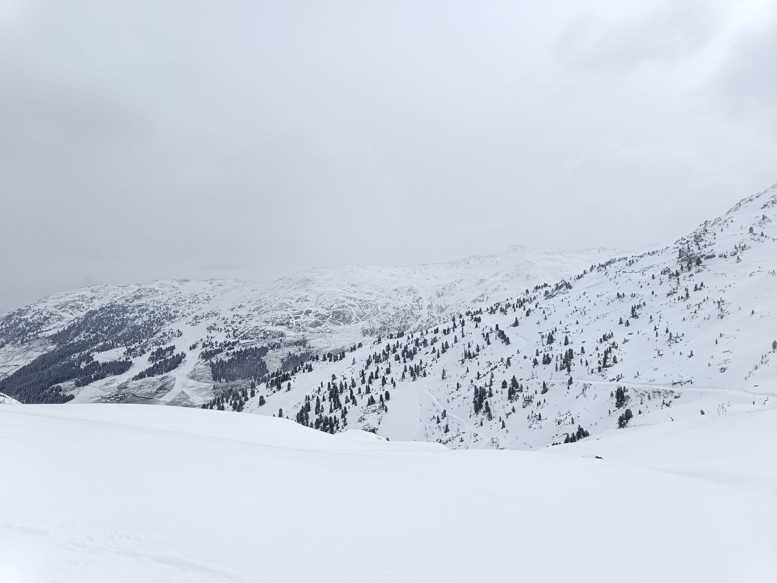 Abfahrt bis zur Piste passabel, wobei die nasse Altschneedecke unter dem Pulver leider oft nicht getragen hat. Piste dann okay, aber sehr zerfahren. Es waren schon ziemlich viele Leute am Start, aber fast niemand ist Richtung Gilfert.