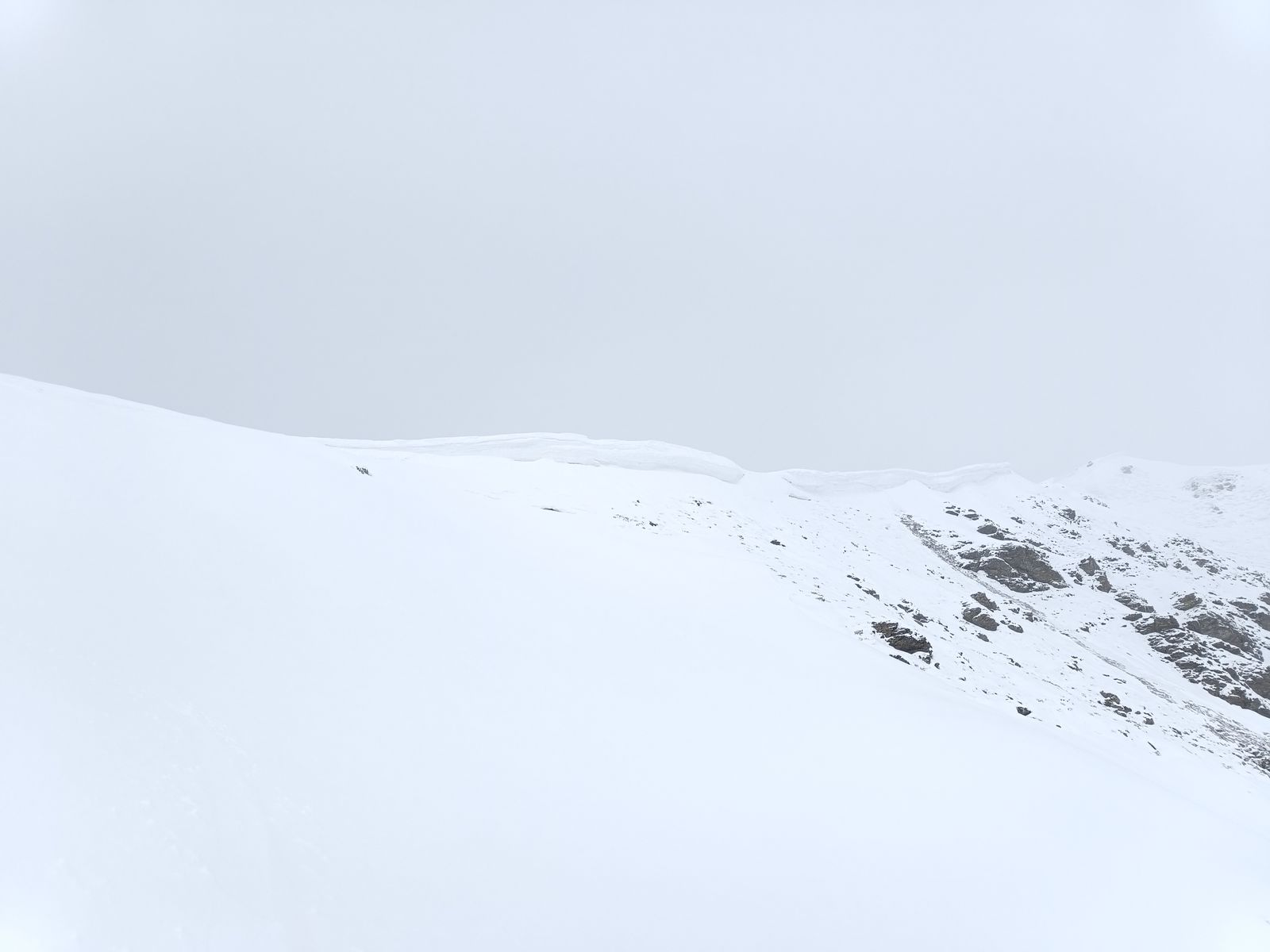 Ich bin heute nicht zum Gipfel des Gilfert, sondern nur bis zum Kammansatz (ca 2300 Meter). Hier war es sehr stürmisch und folglich das Gelände auch total abgeweht, weshalb es für mich keinen Sinn machte, weiterzugehen.