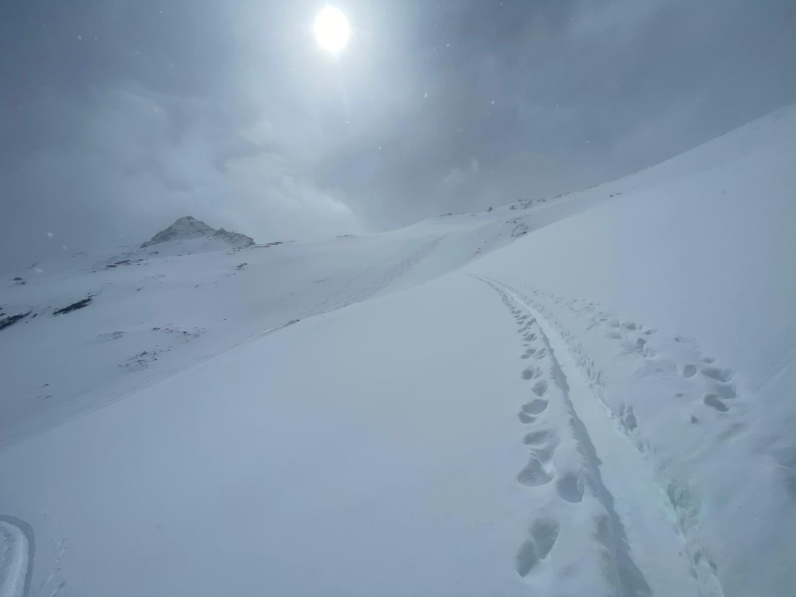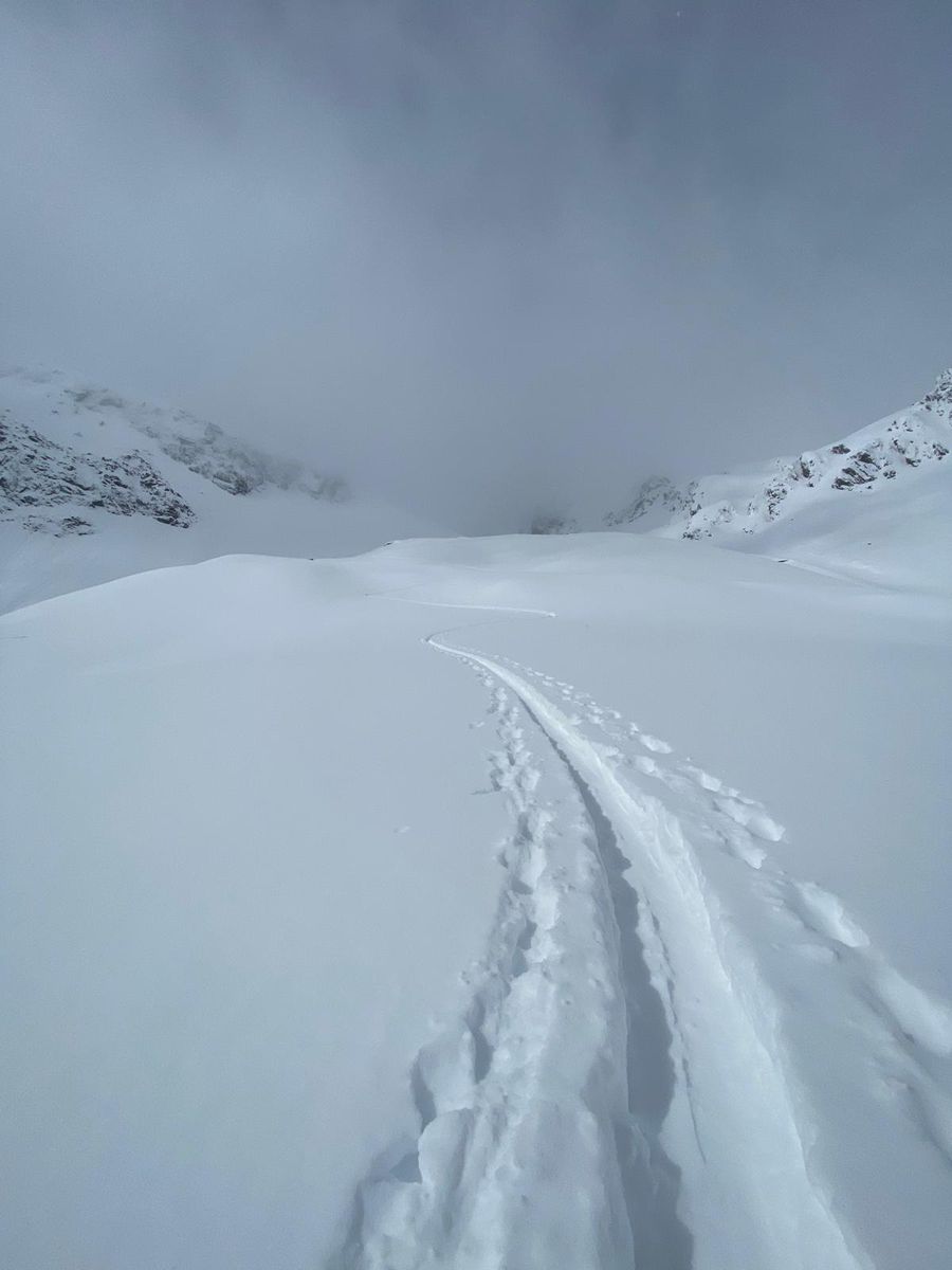 Wenig Leute, gute Bedingungen. Die Haupthänge feiner Pulver, zunehmend schwerer nach unten. 10 min über dem alten Lifthäusl ist Schluss. Sonne erwischt in der Abfahrt. Im Aufstieg oft Whiteout.
