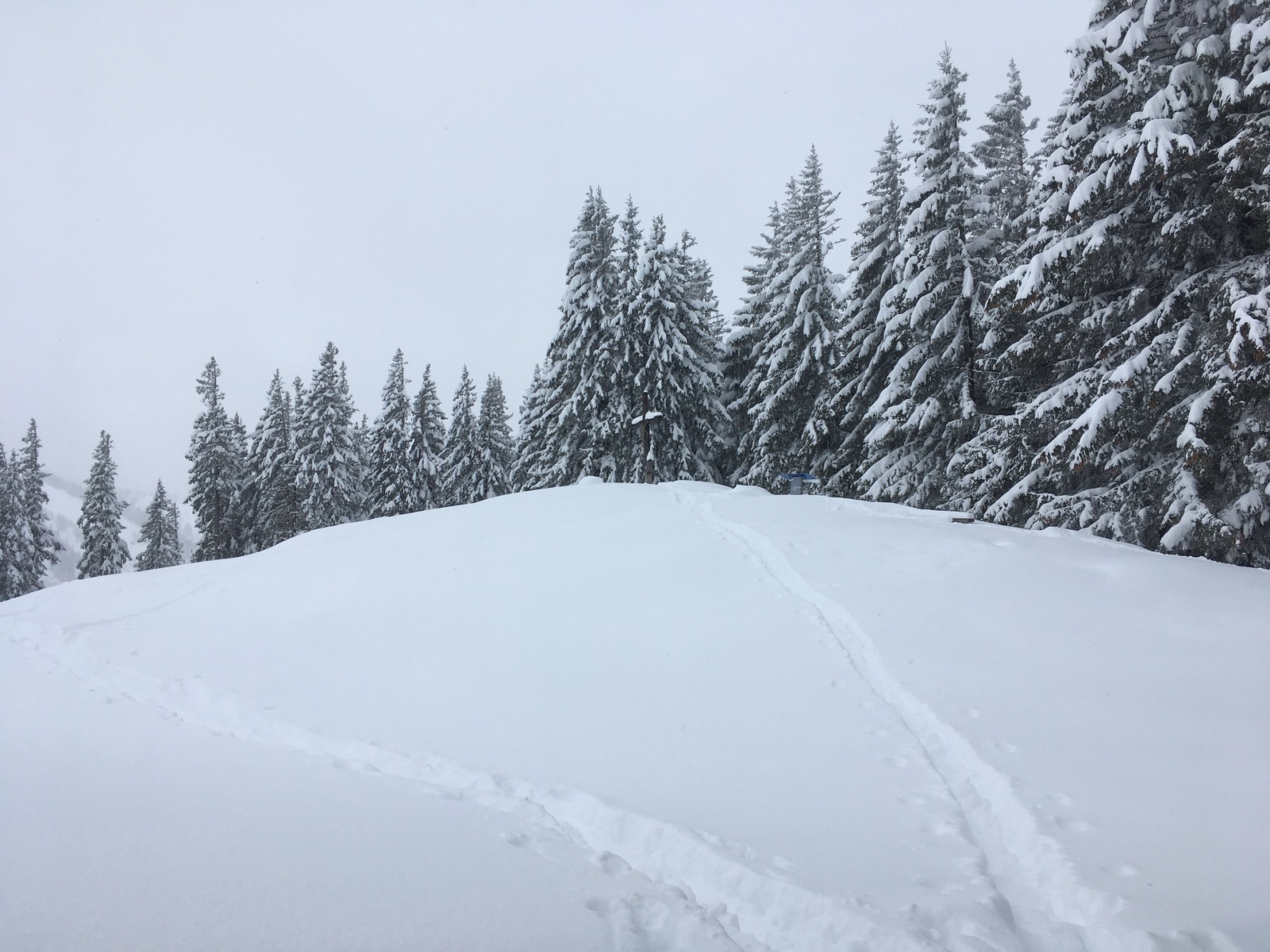Heute ging es nach dem Iseler gestern nochmals ins Allgäu, dieses Mal aber auf die andere Seite des lllertals - nach Bolsterlang. Gestartet bin ich im Dorf (Bushaltestelle Bolsterlang) - meistens wird eher beim Dorflift gestartet (auch dort gibt es eine Bushaltestelle, bei der ich auch herauskam). Als Nachteil des Startpunktes erwies sich, dass ich nach kurzem Fußweg zur Talstation der Hörnerbahn den weiteren Aufstieg durch die Liftschneise spuren musste. Ganz schön kraftraubend mit dem vielen Neuschnee. Kurz nach der Talstation der unteren Sesselbahn kam ich dann auf die Spur vom Dorflift und so ging es gleich deutlich leichter hoch zum Weiherkopf. Obwohl im unteren Teil nur der Neuschnee liegt, lag heute mehr als genügend Schnee.