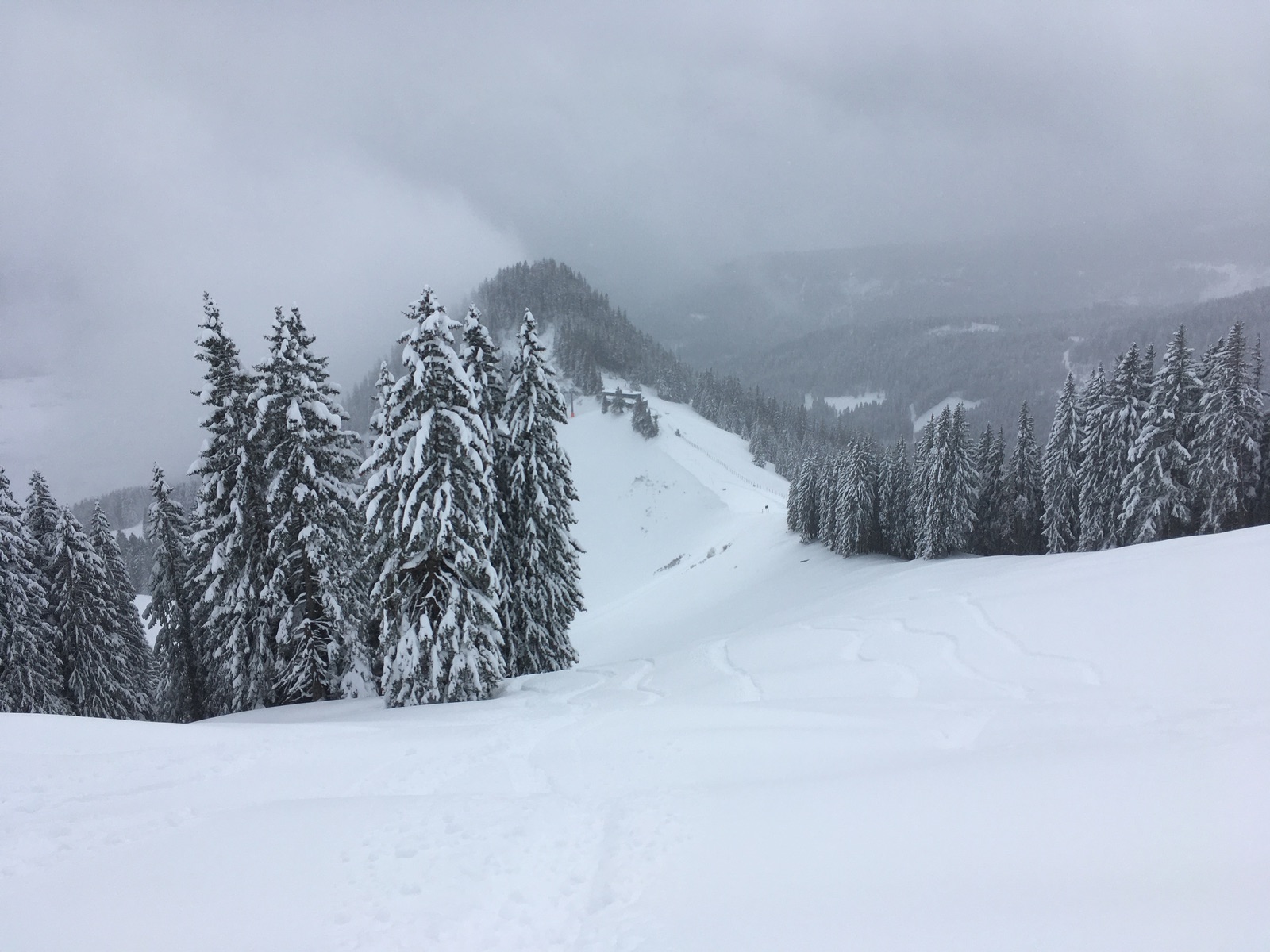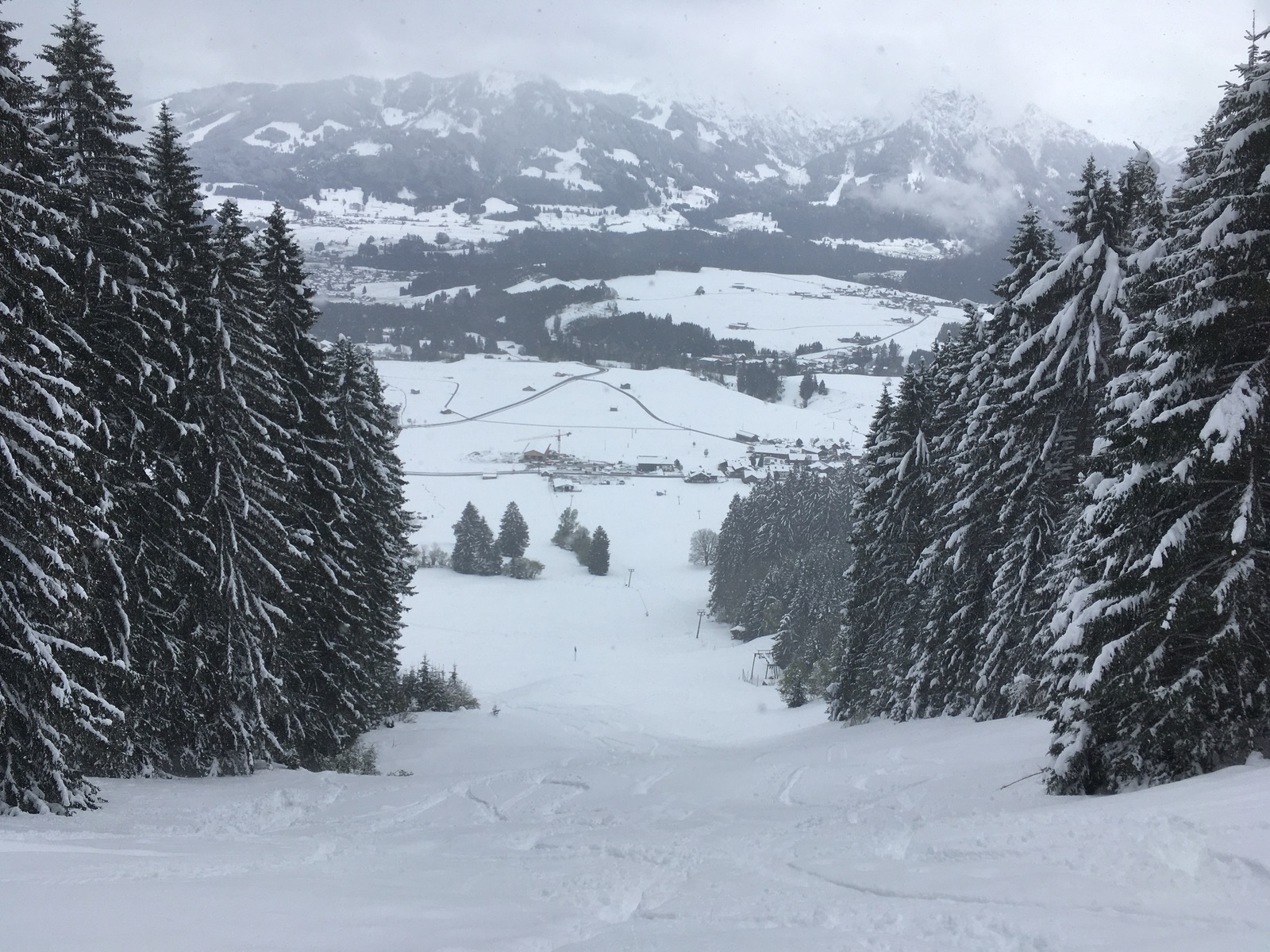 Bei der zweiten Abfahrt unterhalb der Mittelstation - kurzer Blick ins Tal: