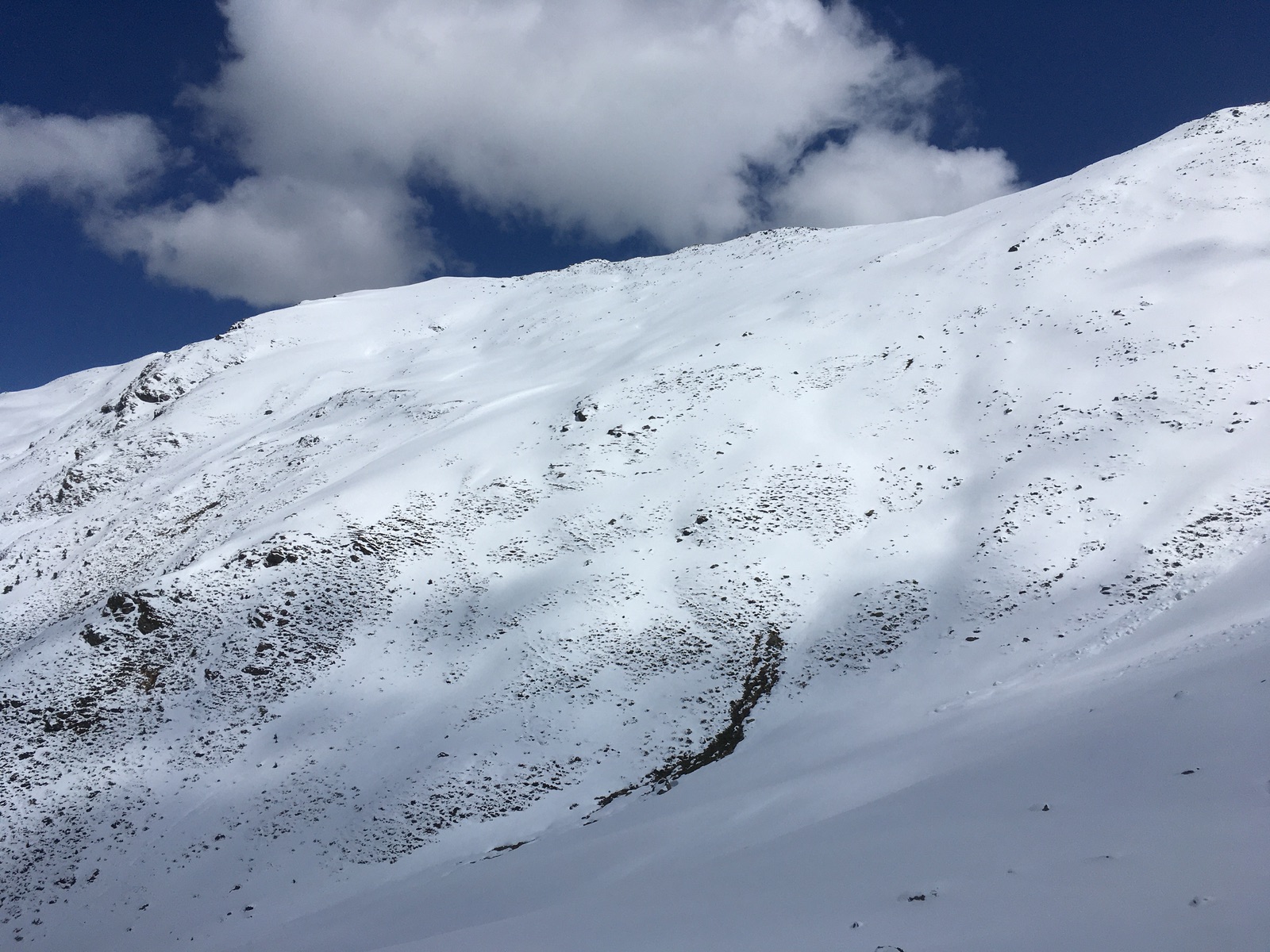 Der Aufstieg aus dem Fotschertal im oberen Bereich (im unteren Bereich vermutlich auch wenig Schnee):