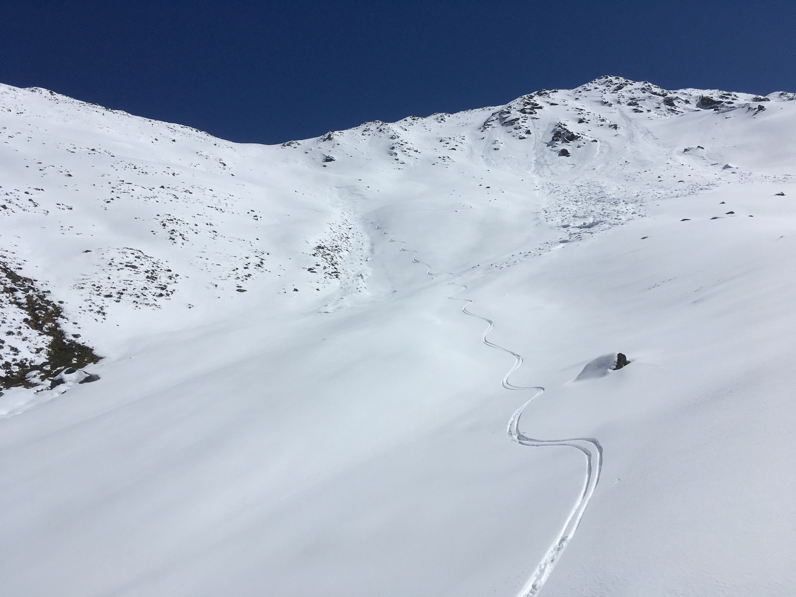 Auf ca. 2.200 m geht es in eine Art Kessel (meine Spur ist etwas zu hoch geraten):