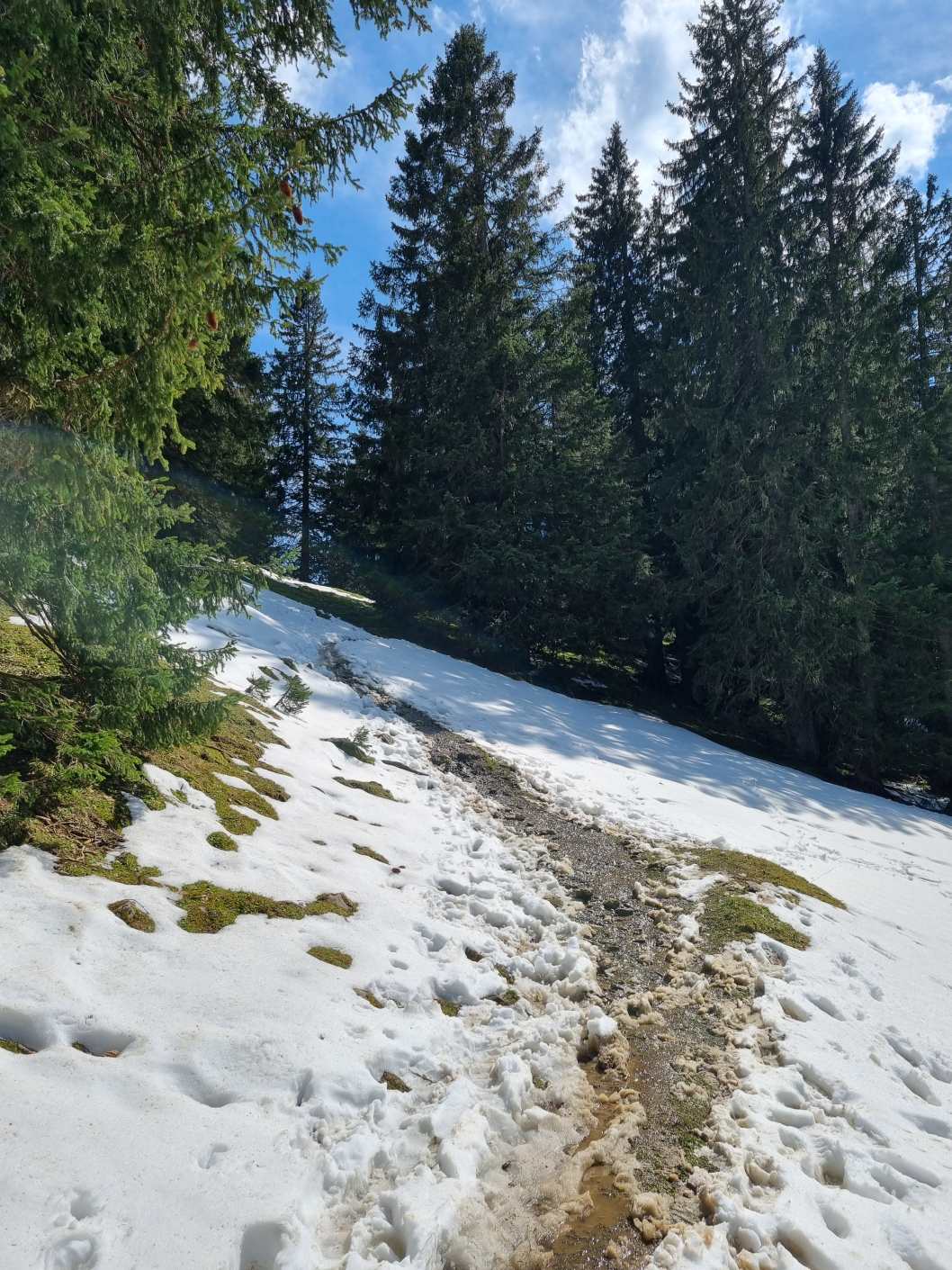 Einziges kleines Altschneefeld im Aufstieg zum Fockenstein