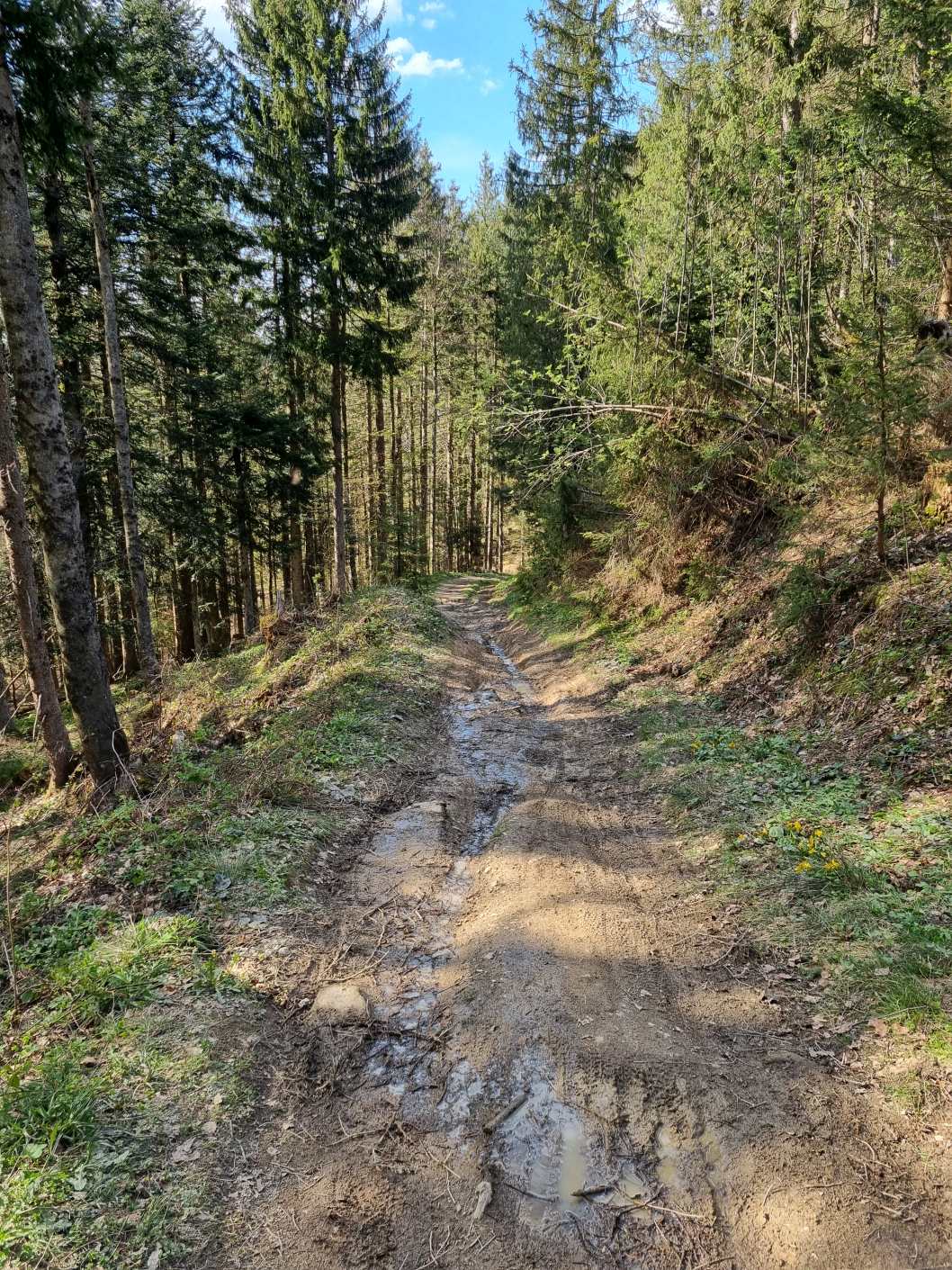 Auf bazigem Trail zur Forststraße