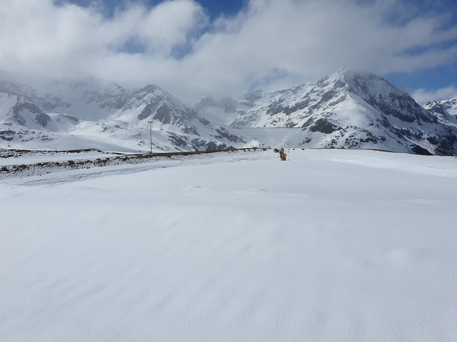 Von der Hochalterbahn dann kurze Abfahrt und beim Skitunnel wieder aufgefellt und Richtung Kaiserbahn-Bergstation über Ziehweg am Speichersee vorbei mit Option auf Pirchkogel.