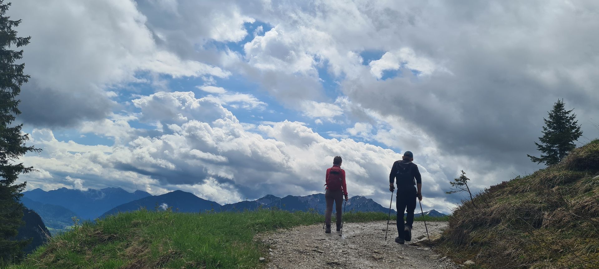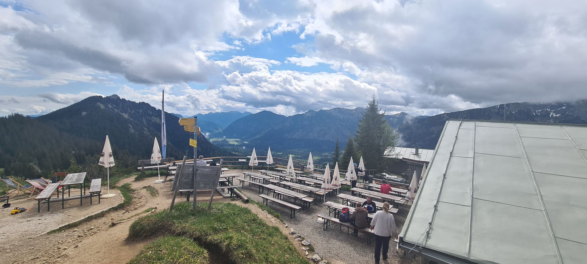 Über den grobschottrigen Karrenweg im untersten Bereich läuft das Wasser, was aber nicht weiter stört, weil es eben so grobschottrig ist und man auch ausweichen kann. Der restliche Reitweg bis zur Brunnenkopfhütte ist trocken und gut zu gehen. Der Gipfelanstieg dann feucht und geringfügig rutschig.
