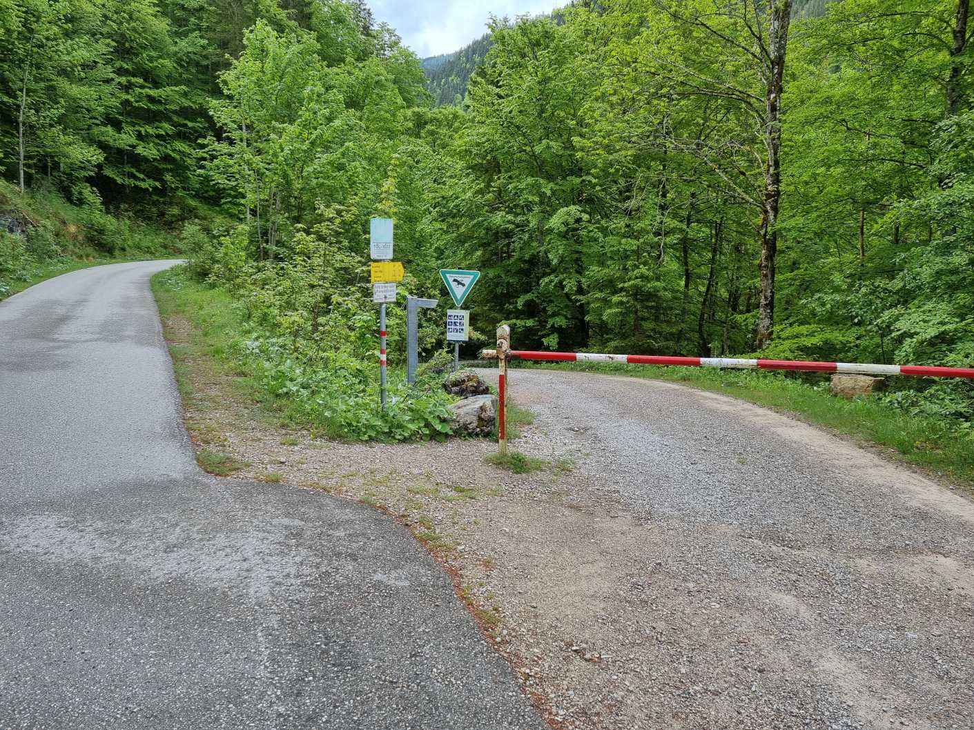 Nach den ersten 4 Km muss die Straße an dieser Schranke verlassen werden. Der Straße danach immer weiter folgen