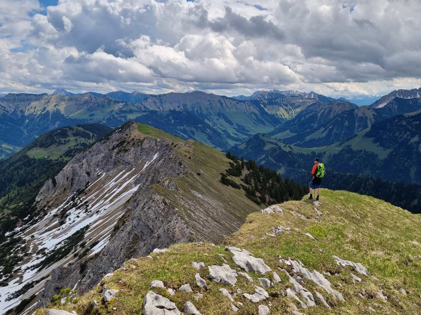 Vom Stierjoch auf dem offiziell markierten Grat bis zum östlichen Torjoch. Bis auf ein kurzer steilerer Abstieg in eine Scharte ein ganz gemütlicher Spaziergang im Grasgelände.