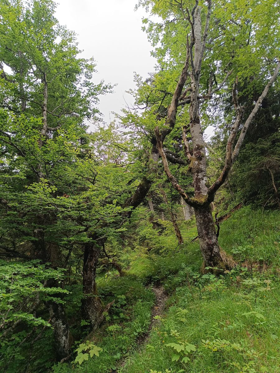 Nun aber wirklich in Stichpunkten weiter: Jochberg - Kotalm - Staffelalm - Rabenkopf (mit Umweg über Bergwachthütte, da von dort viel schönerer Steig). Vom Rabenkopfgipfel geht es geradeaus (nicht zur Staffelalm, kein Schild) auf deutlichem Steig, teils steil durch herrlichen Wald hinab bis eine Forststraße erreicht wird. Über diese kann man den Lainbach-Wasserfall erreichen und dann zum PP zurück. Weil's mir heute aber so getaugt hat, hab ich noch eine weitere sehr lohnende Schleife eingeflochten, indem ich links abgezweigt bin, und (mit erheblichem Gegenanstieg) über die verfallene und auch gar nicht mehr erkennbare Mair-Alpe das ganze Lainbachtal ausgegangen bin.