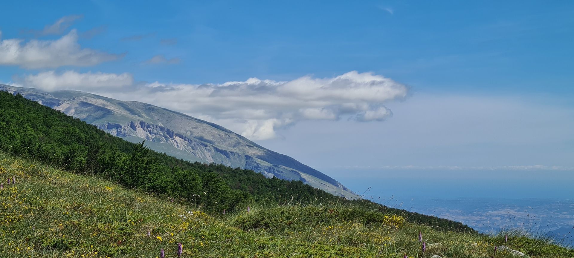 Derzeit herrschen ideale Wanderverhältnisse in den Abruzzen. Während es an der Küste teilweise 30° sind, war die Temperatur heute morgen am Ausgangspunkt 17° und bei meiner Rückkehr 20°. Die Tour führte heute in absolute Einsamkeit und das über gut markierte und unschwierige Wege auf einen gigantischen Aussichtsberg. Man konnte die Küste und das Meer sehen, den Gran Sasso und den Monte Amaro sowieso. Wunderbar auch die vielen blühenden Blumen.