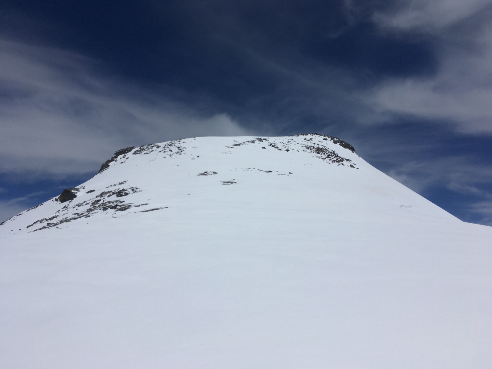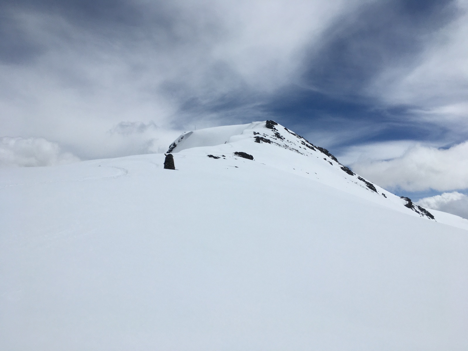 Nach dem kurzen Schnapper in der Ostflanke geht es die letzten Meter zum Gipfel eher zahm hoch: