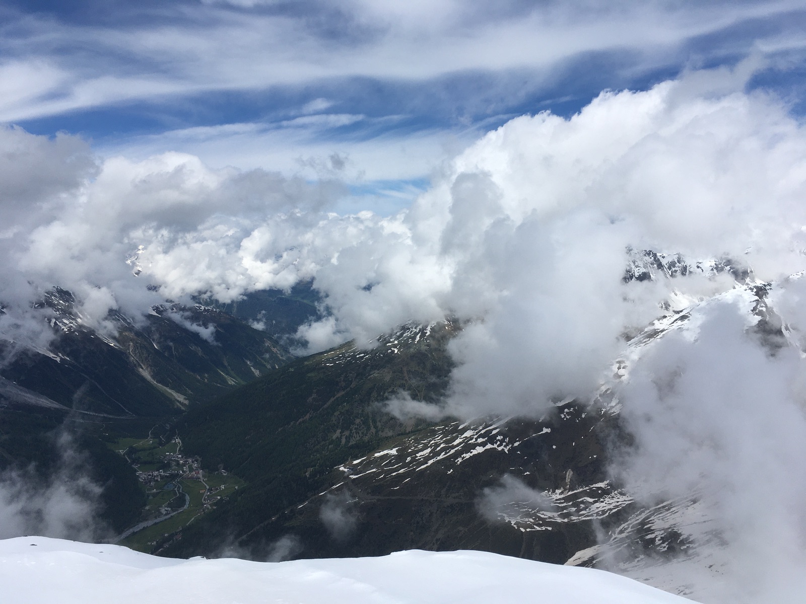 Tiefblick nach Sulden - Achtung, nicht zu weit vor gehen - es geht sehr steil und wohl mit großer Wächte hinab: