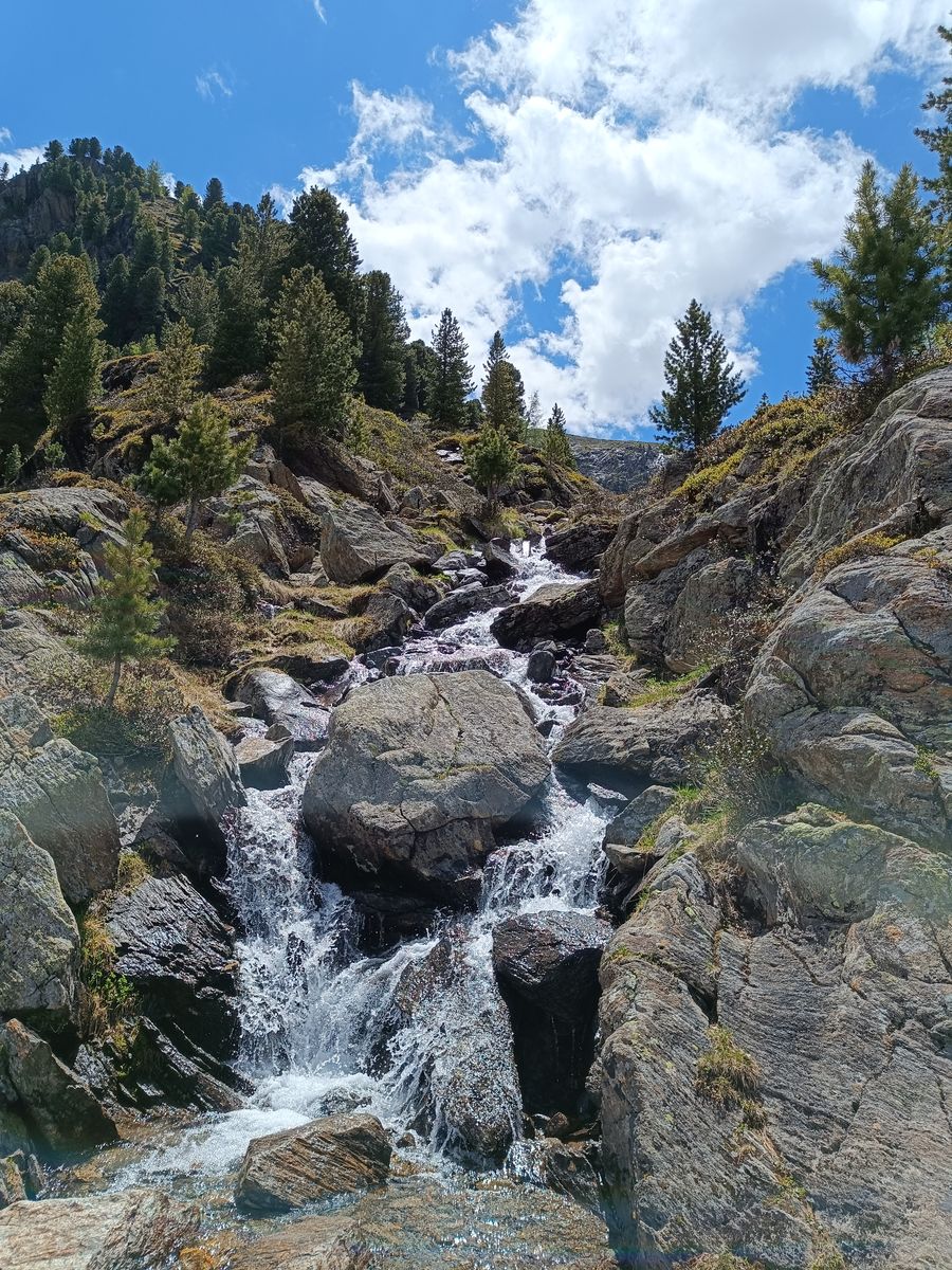 Tipp: Man muss nicht auf der Straße zur Staumauer hoch, sondern es gibt einen landschaftlich sehr schönen Steig mit vielen Bächen/Wasserfällen. Dieser zweigt wenige Meter nach dem PP nach links von der Straße ab. Allerdings steht auf dem Schild dort nur "Drei-Seen-Hütte", obwohl nach etwa 100 Metern, dieses Mal nach rechts, ein Steig zum Stausee abzweigt.