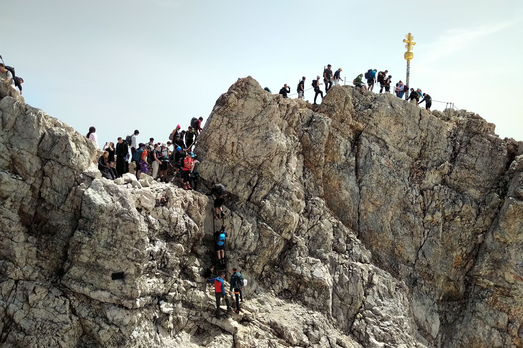 Eigentlich wollte ich auch noch auf den Gipfel, um einen Blick ins Höllental zu werfen. Aber bei diesem Andrang ist mir die Lust vergangen. Es standen ja noch viele Leute schon auf der unteren Plattform an, das sieht man auf dem Foto gar nicht!
