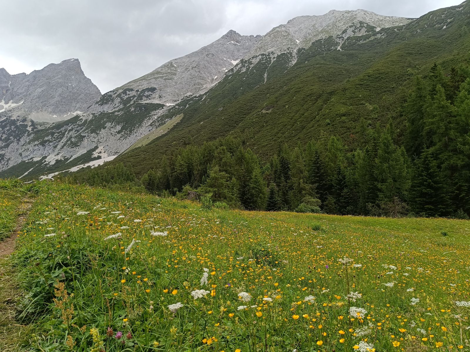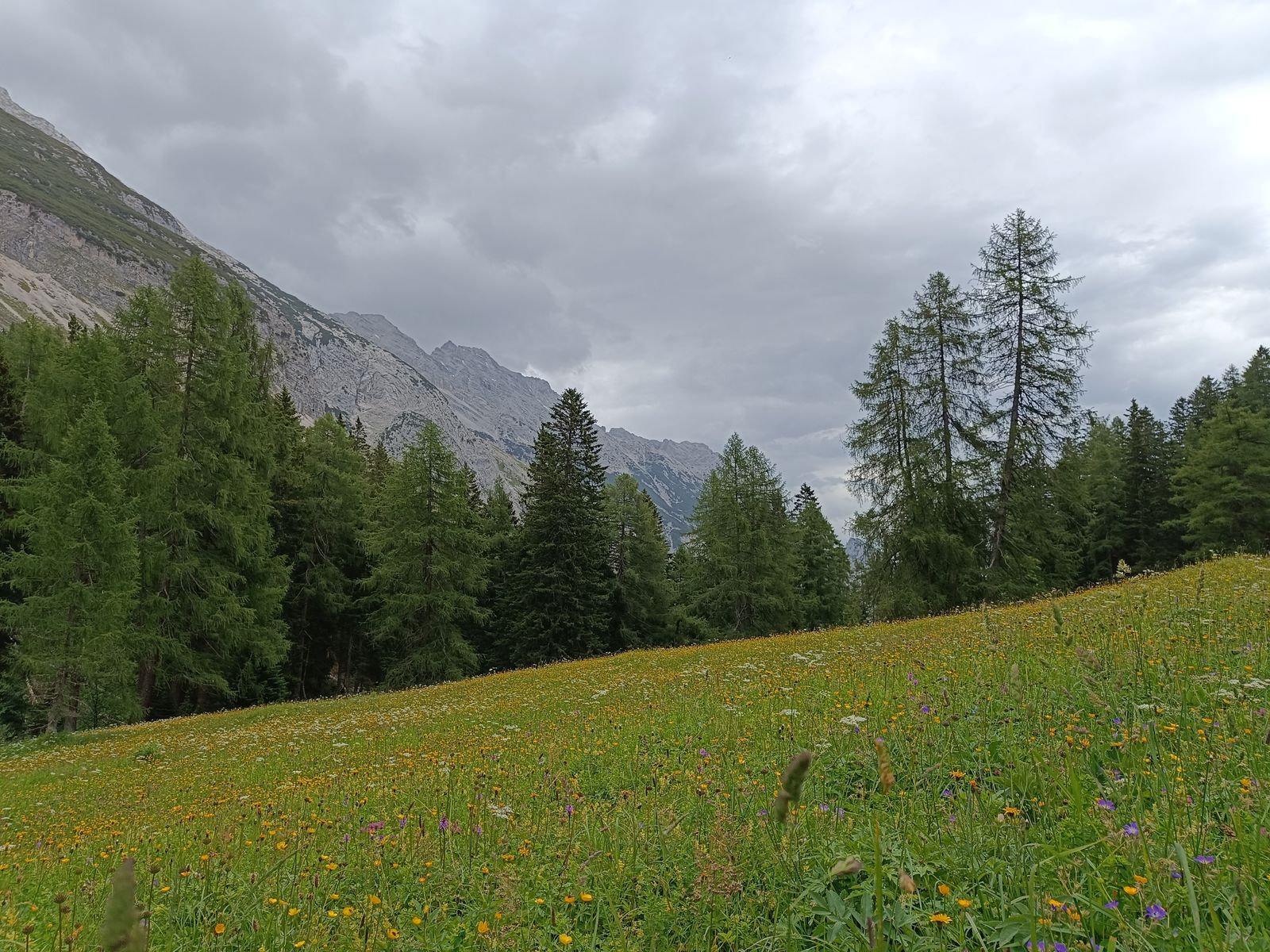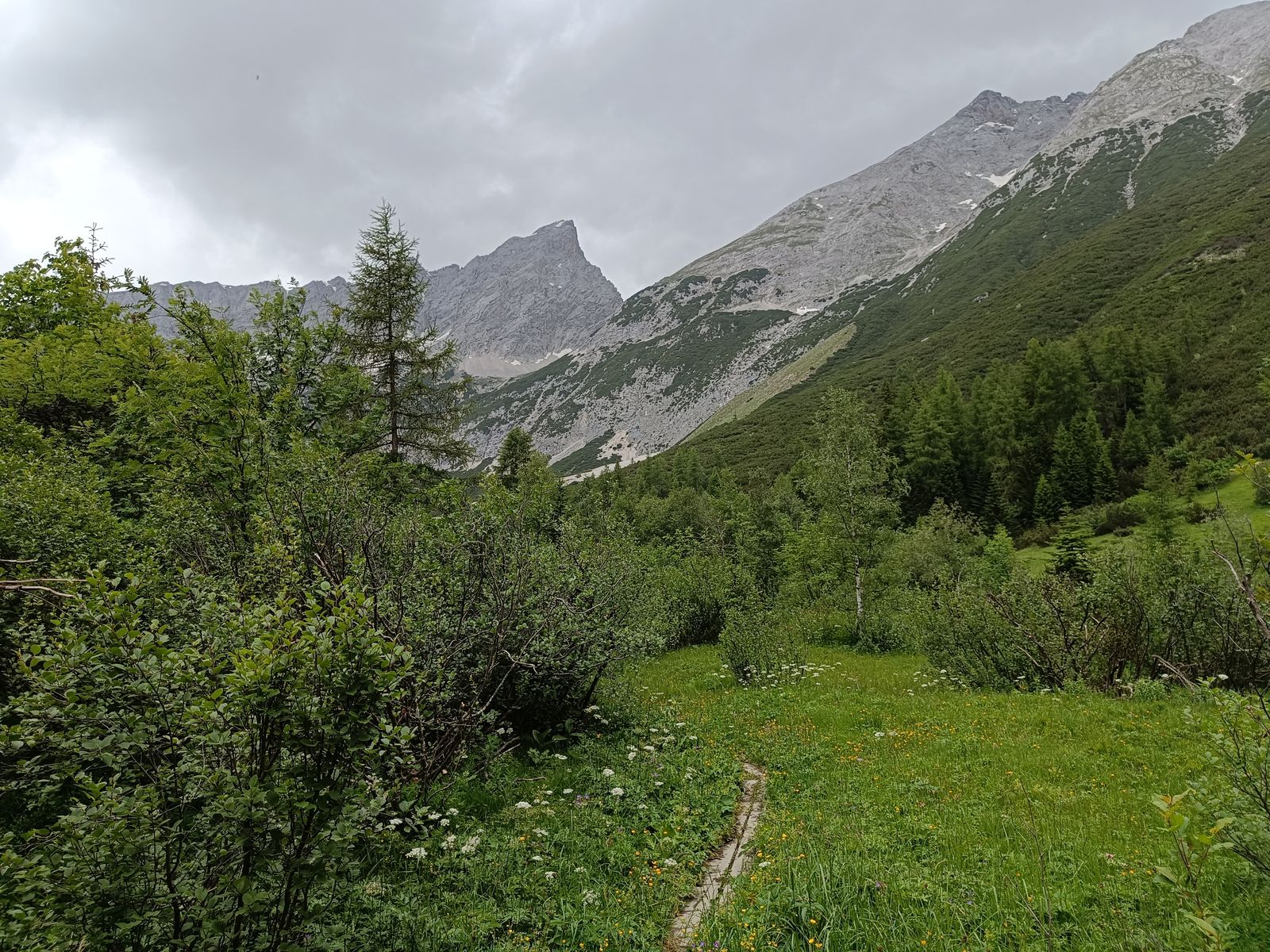 2-7: Eindrücke von meinem Karwendel-Lieblingsplatz, dem blumenreichen Issanger. Bilder von Abstieg am Sonntag