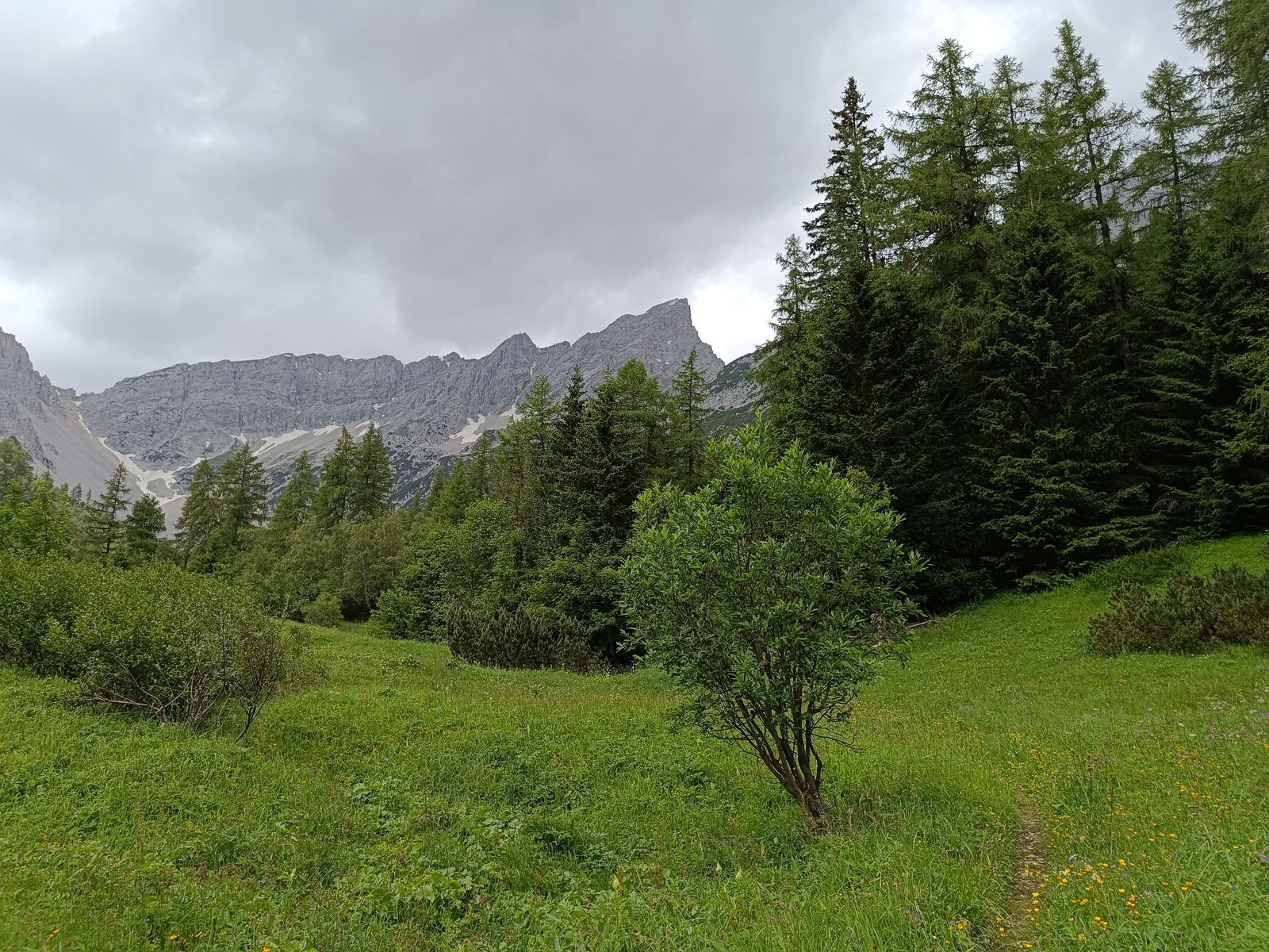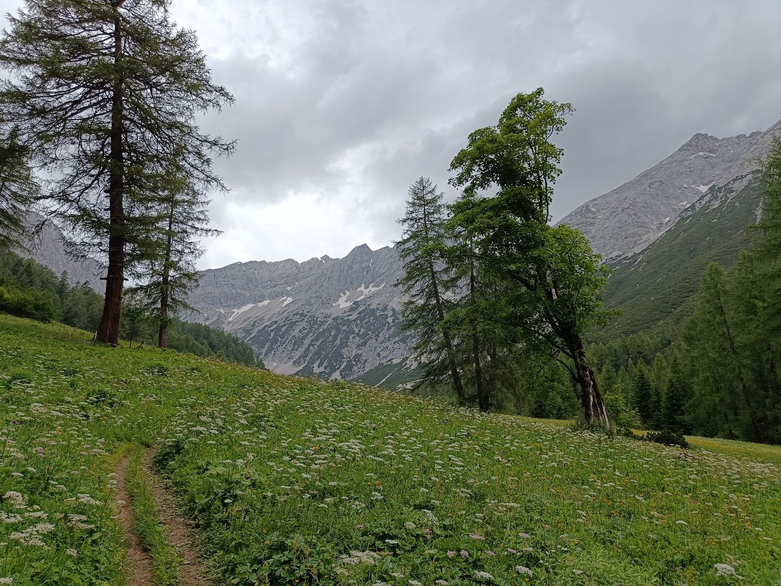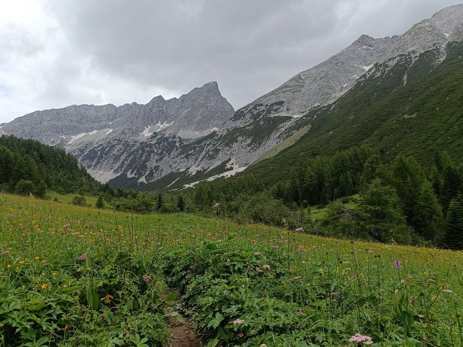2-7: Eindrücke von meinem Karwendel-Lieblingsplatz, dem blumenreichen Issanger. Bilder von Abstieg am Sonntag