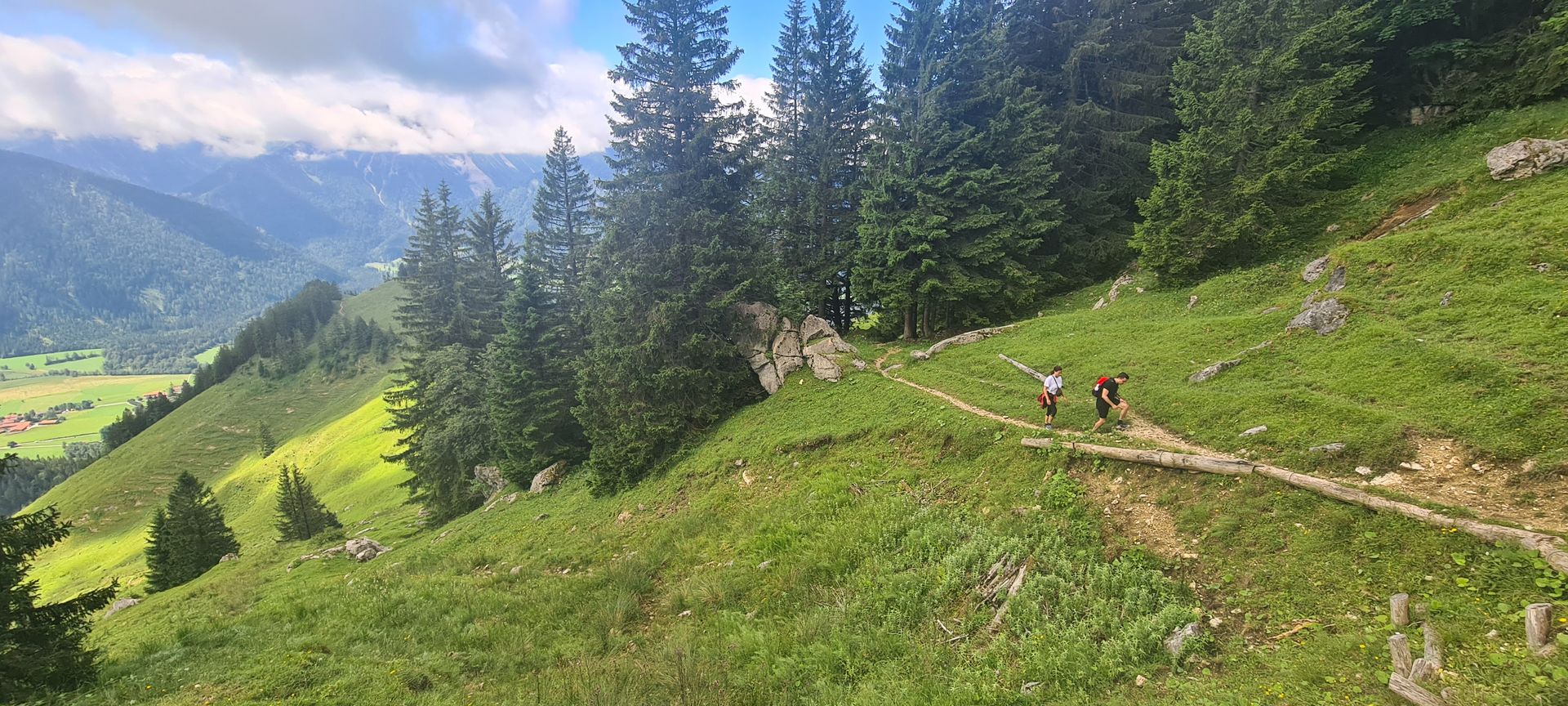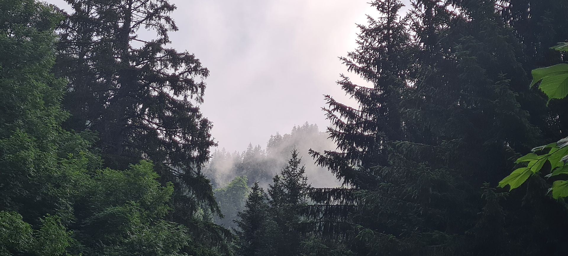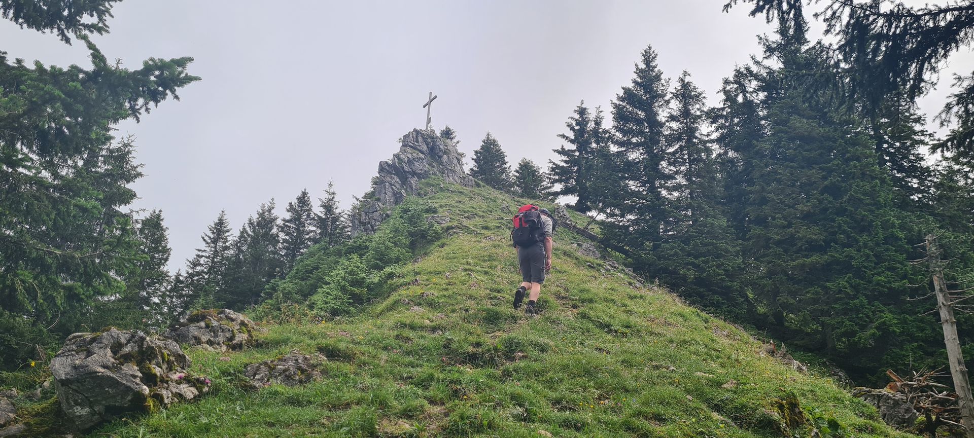 Tourenverhältnisse: Am morgen alle Gipfel noch in dicke Wolken gehüllt. Ich vermute fast, dass es oben zu dieser Zeit noch geregnet hat. Im Almgelände angekommen, war alles patsch-nass und teilweise recht batzig. Wobei sich das Richtung Türkenköpfl in Grenzen hält, aber andere haben mir erzählt, dass es Höhe Kothalm (Schweinsberg Normalweg) ganz schlimm sein soll. Bei meiner Überschreitung des Schweinsberges gab es auch einige batzige und vor allem rutschige Passagen, aber es ging. Wer Wanderstöcke dabei hatte, war heute klar im Vorteil.