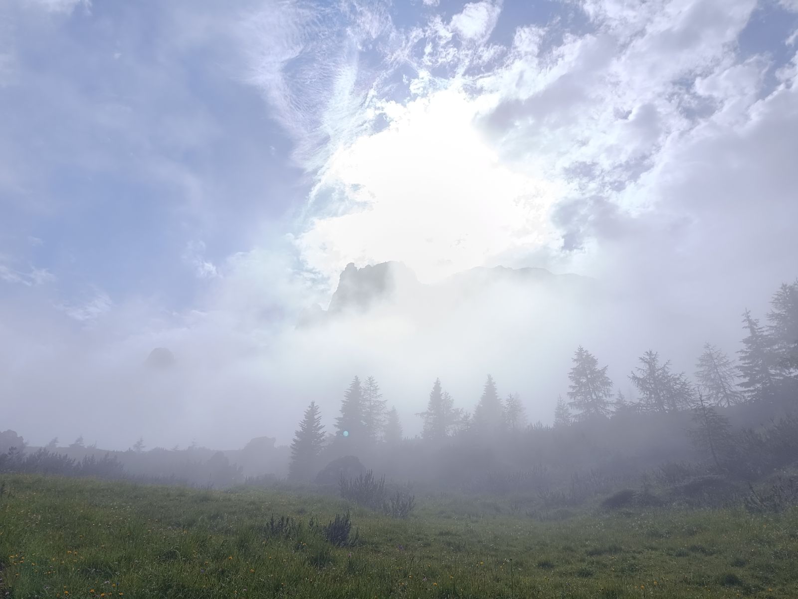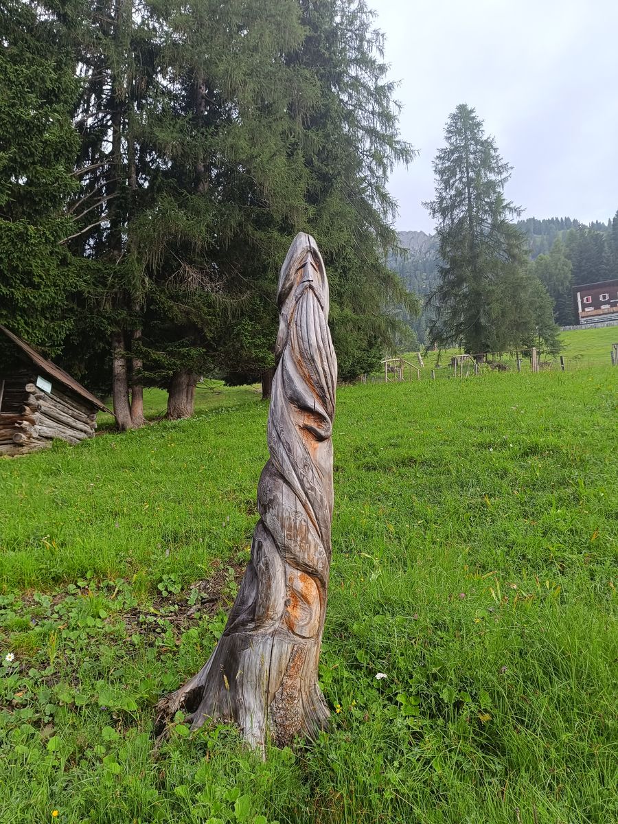 Also weiter am Hauptweg zu den malerischen Laghi d'Olbe und weiter zum Scheibenkofel. Zurück zum See und weiter zur Casera Olbe. Nun würde ich empfehlen, nicht am Anstieg oder durch's Skigebiet abzusteigen, sondern den schönen und offensichtlich selten begangenen Sentiero Naturalistico (Nr. 4, gelb markiert) zu nehmen, zumal man dann noch (völlig weglos) den Ebenkofel (Monte della Piana) besteigen kann. Dieser wartet mit einer grandios dichten Blumen- und Gräservegetation auf, wie man sie nur selten sieht!