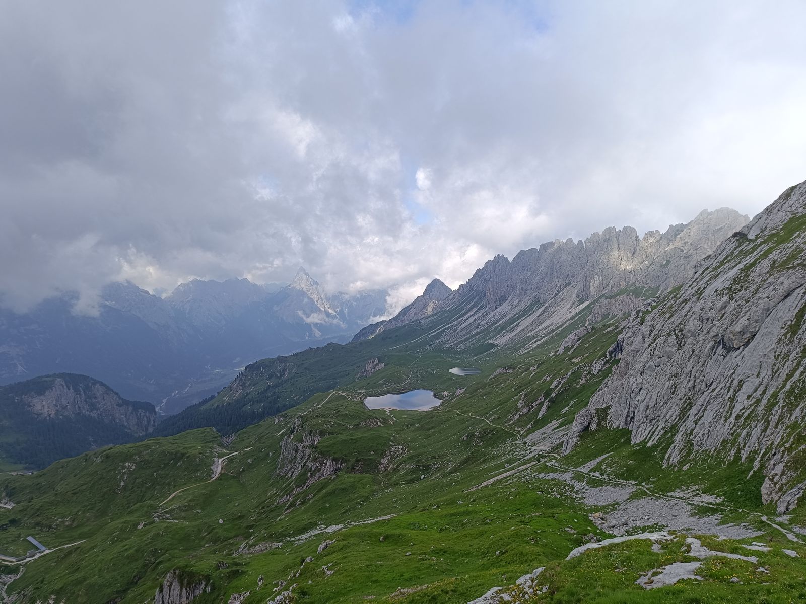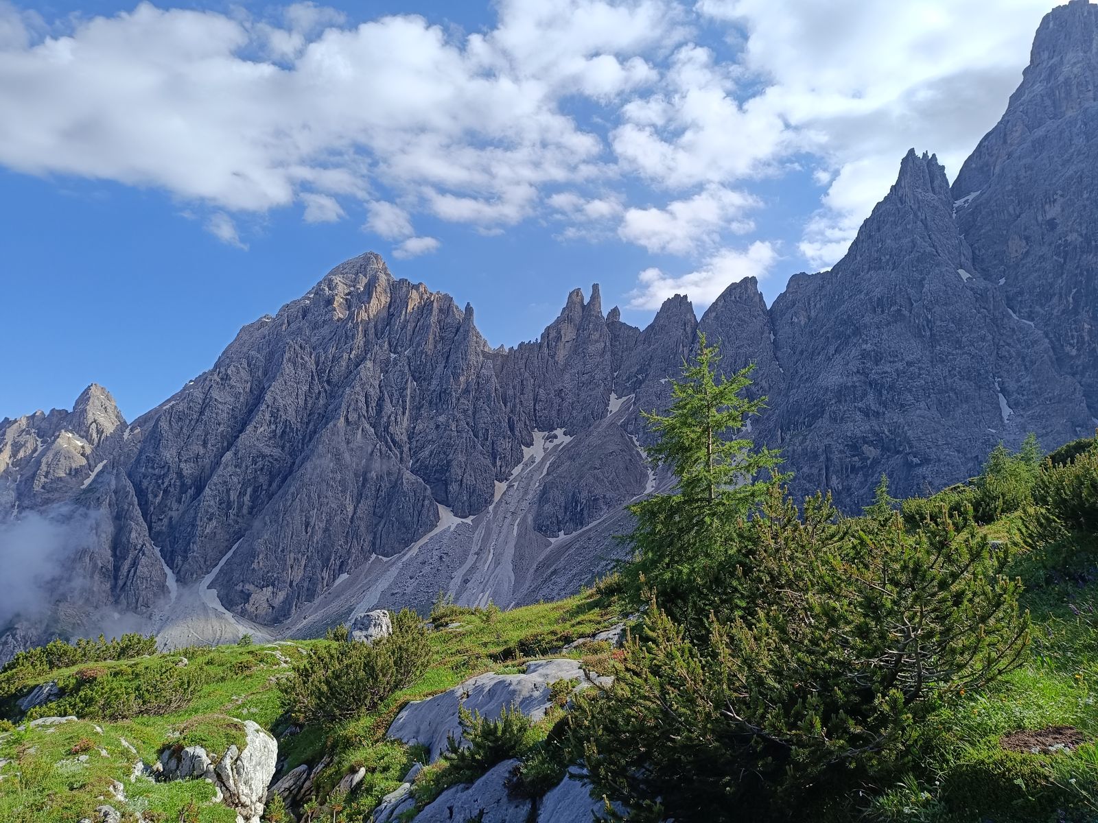 Freitag Mittag ging's los und im strömenden Regen via Sexten Richtung Bladen. Eigentlich hatte ich den Gedanken, noch eine kleine Tour einzustreuen, schon ad acta gelegt, doch als ich am Kreuzbergpass war, riss es unvermittelt komplett auf und so gönnte ich mir noch eine sehr schöne Abendtour: Die Runde über den Arzalpenkopf (Croda Colisei, 2371m); Rundtour, ca. 4 Stunden, T3-4), es gäbe da auch einen schönen Klettersteig.