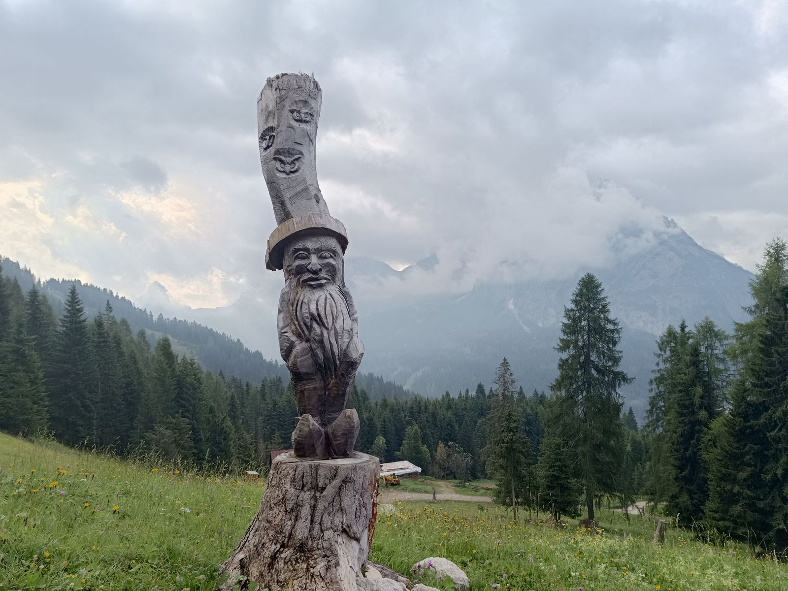 Also weiter am Hauptweg zu den malerischen Laghi d'Olbe und weiter zum Scheibenkofel. Zurück zum See und weiter zur Casera Olbe. Nun würde ich empfehlen, nicht am Anstieg oder durch's Skigebiet abzusteigen, sondern den schönen und offensichtlich selten begangenen Sentiero Naturalistico (Nr. 4, gelb markiert) zu nehmen, zumal man dann noch (völlig weglos) den Ebenkofel (Monte della Piana) besteigen kann. Dieser wartet mit einer grandios dichten Blumen- und Gräservegetation auf, wie man sie nur selten sieht!