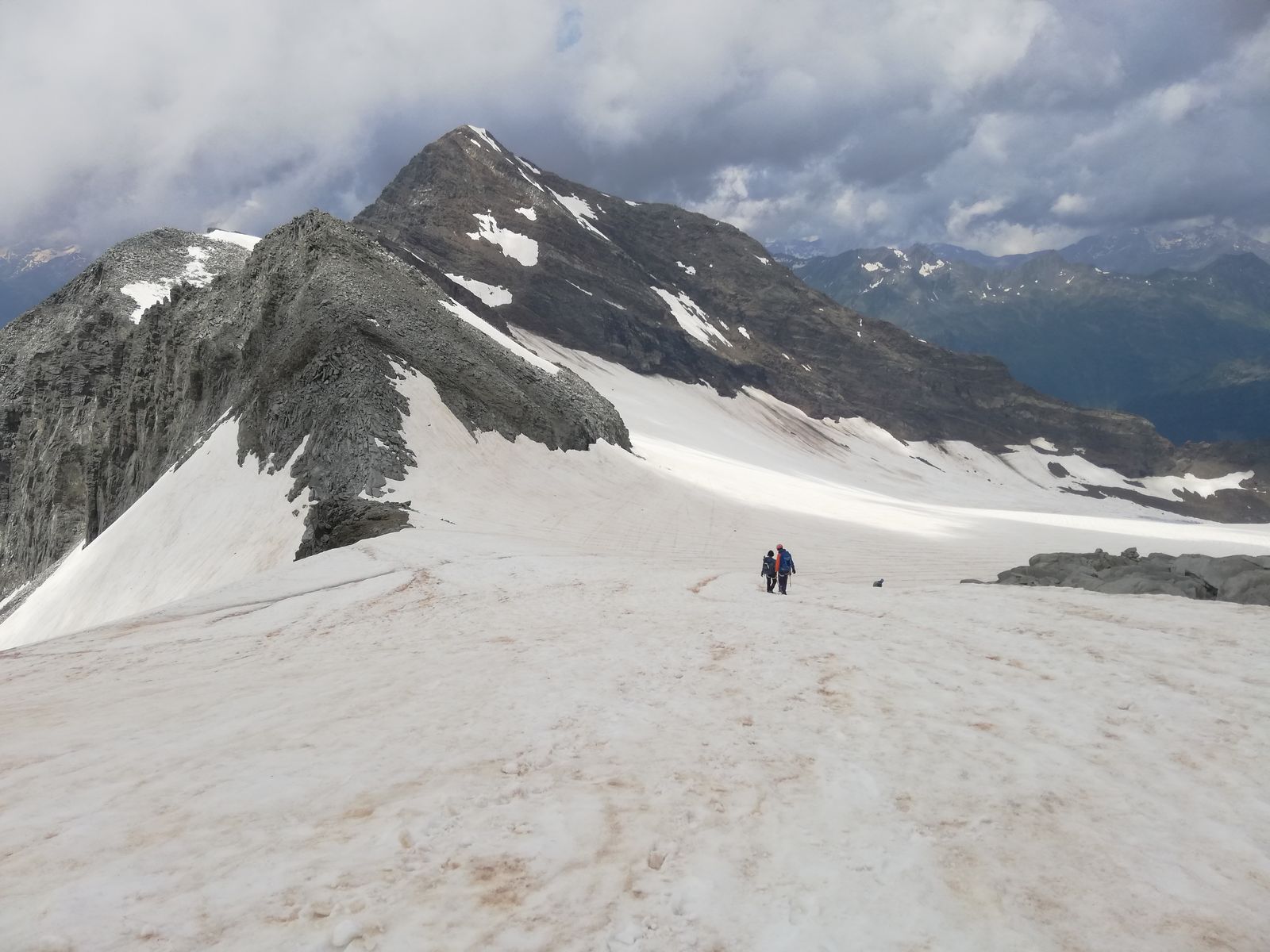 Der Rieserferner soll spaltenfrei sein; wir haben jedenfalls keine gesehen, der Ferner fällt auch sehr gleichmäßig ab, wir waren ohne Seil unterwegs.