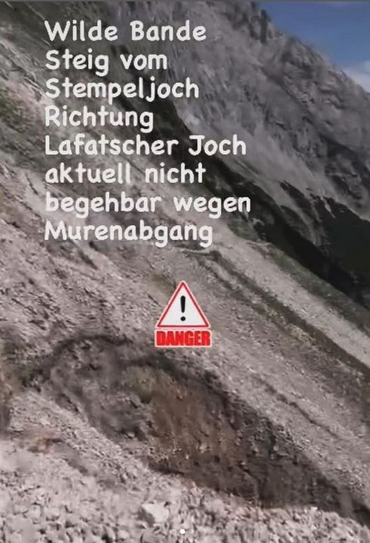Wilde-Bande-Steig vom Stempeljoch Richtung Lafatscher Joch (Etappe 4) aktuell wegen Murenabgang nicht begehbar!