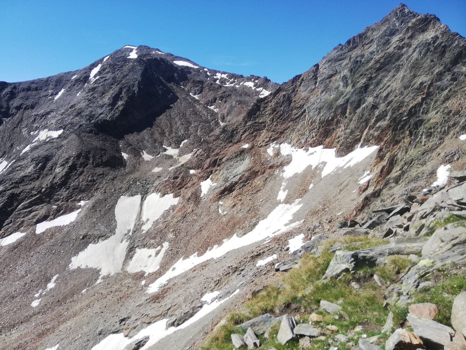 Es sollte wirklich sicheres Wetter den ganzen Tag herrschen, man ist gerade in der zweiten Hälfte sehr lange Zeit direkt am Gratrücken. Ab Wassertalkogel nur auf dem Franz-Auer-Steig derzeit noch zwei kleine Schneefelder.