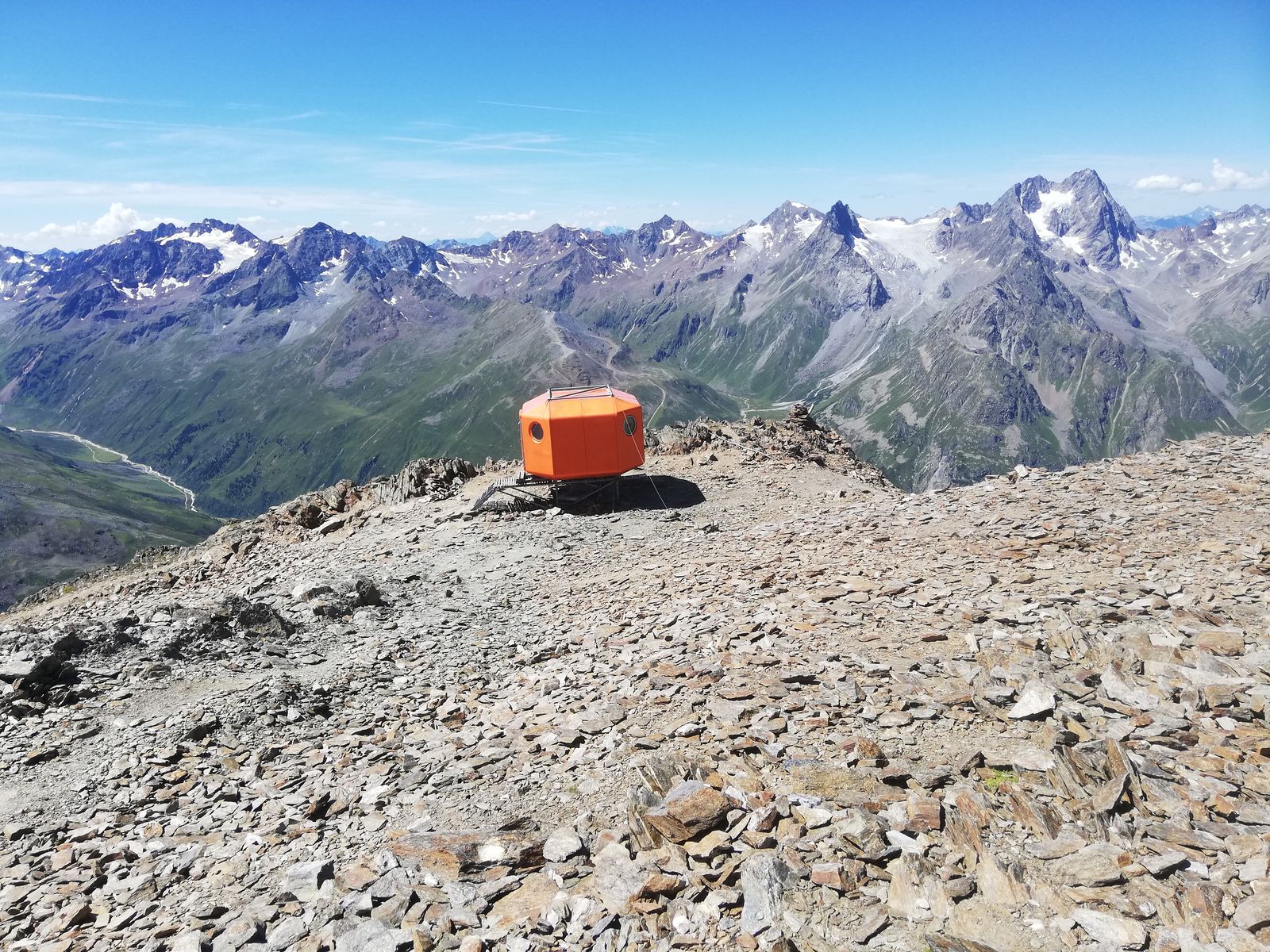 Bild 8: Biwakschachtel auf dem Wassertalkogel; dahinter Südteil des Kaunergrates