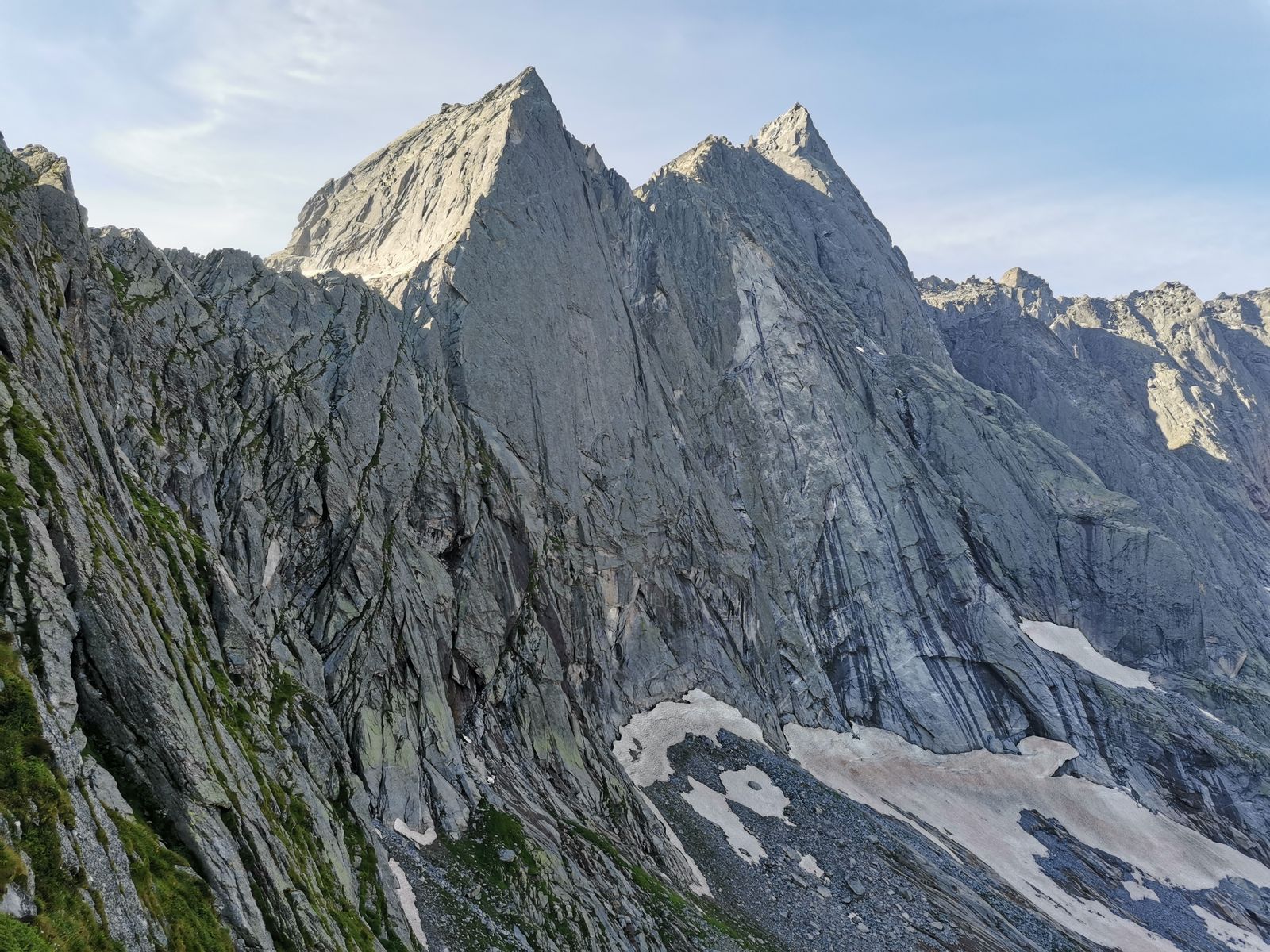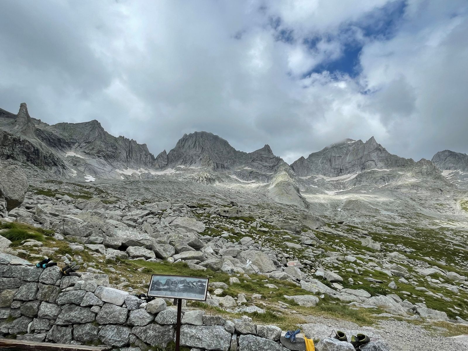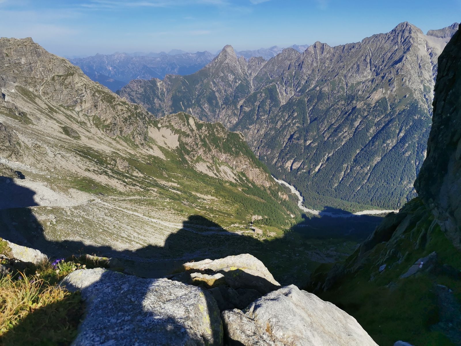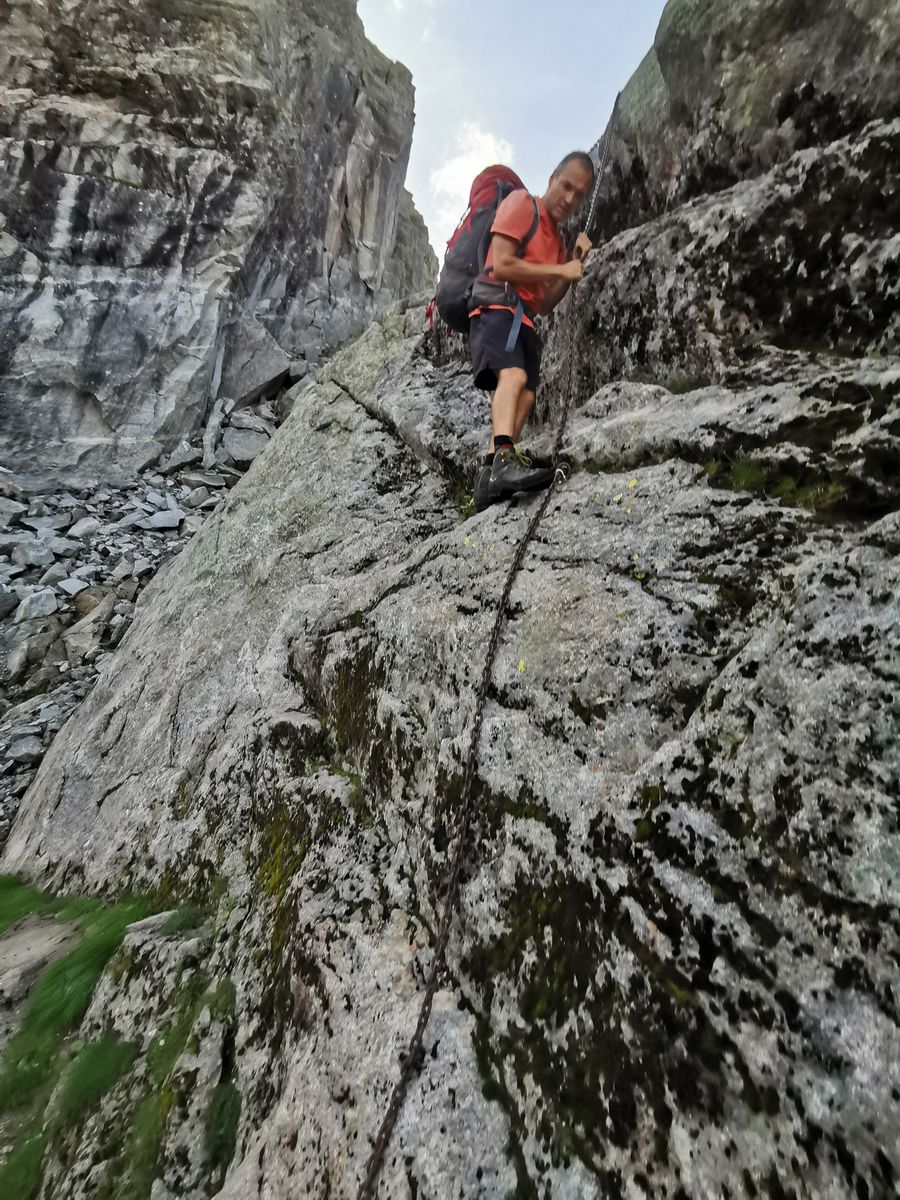 2. Tag über den kettenversicherten und ausgesetzten Passo Ligonico (2575m, Aufstieg 480m) - T4-5, ausgesetzt und langer Abstieg ca 1300hm vorbei am Bivacco Valli unter einem hausgroßen Felsblock zur Rifugio Brasca (1300m) im Val Codera.