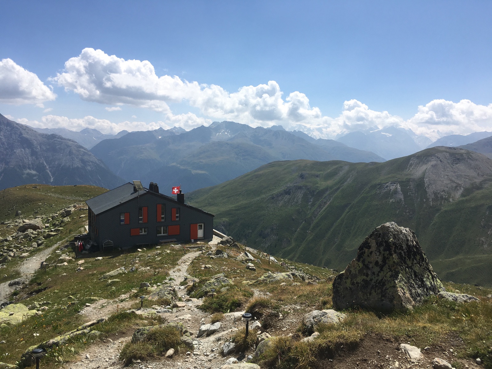 Nach der Fuorcla Gualdauna scheint die Hütte noch weit weg: