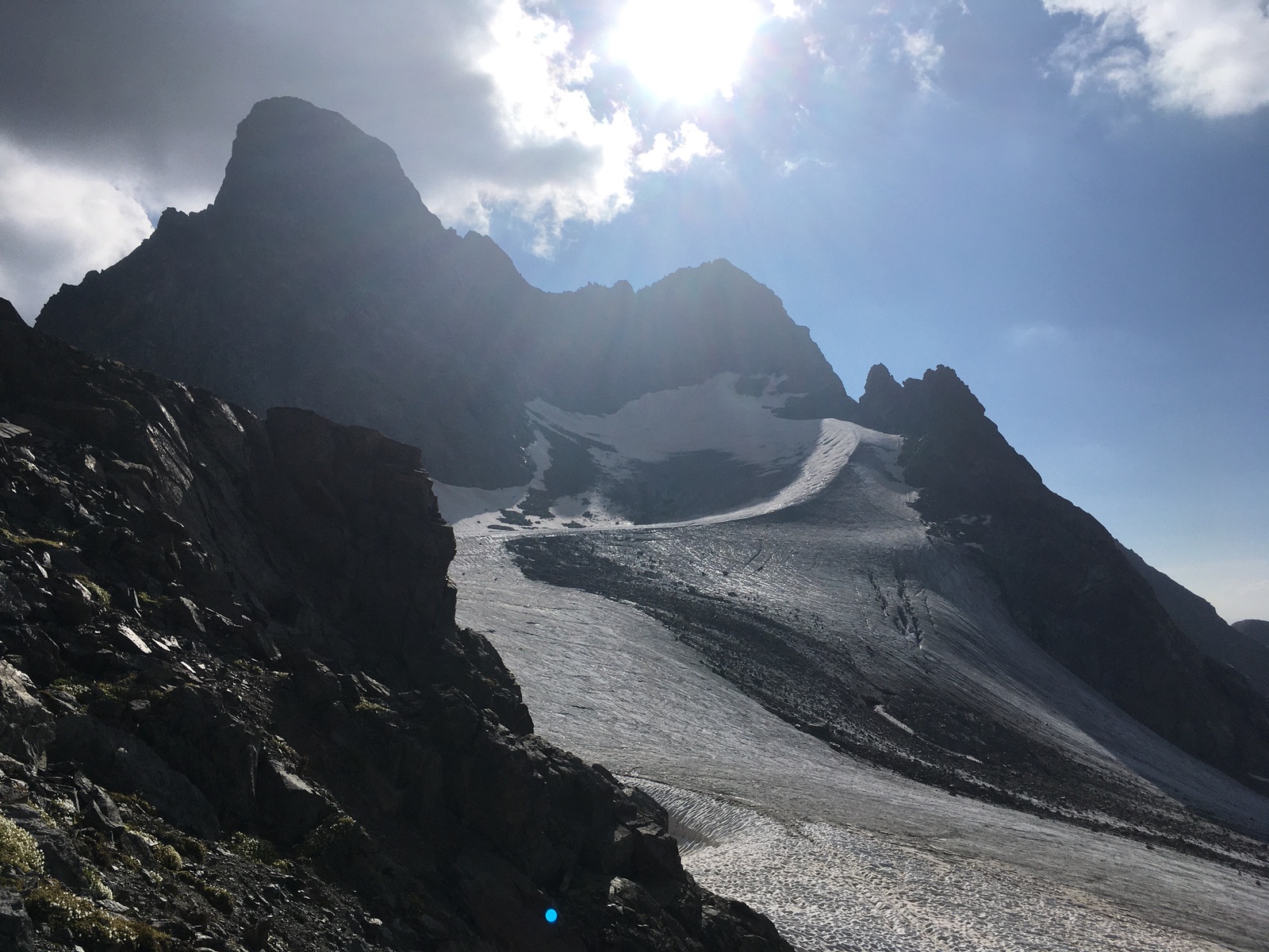 Kaum bin ich wieder zurück in der Porta d'Es-cha, scheint am Gipfel die Sonne: